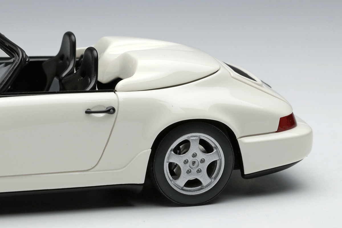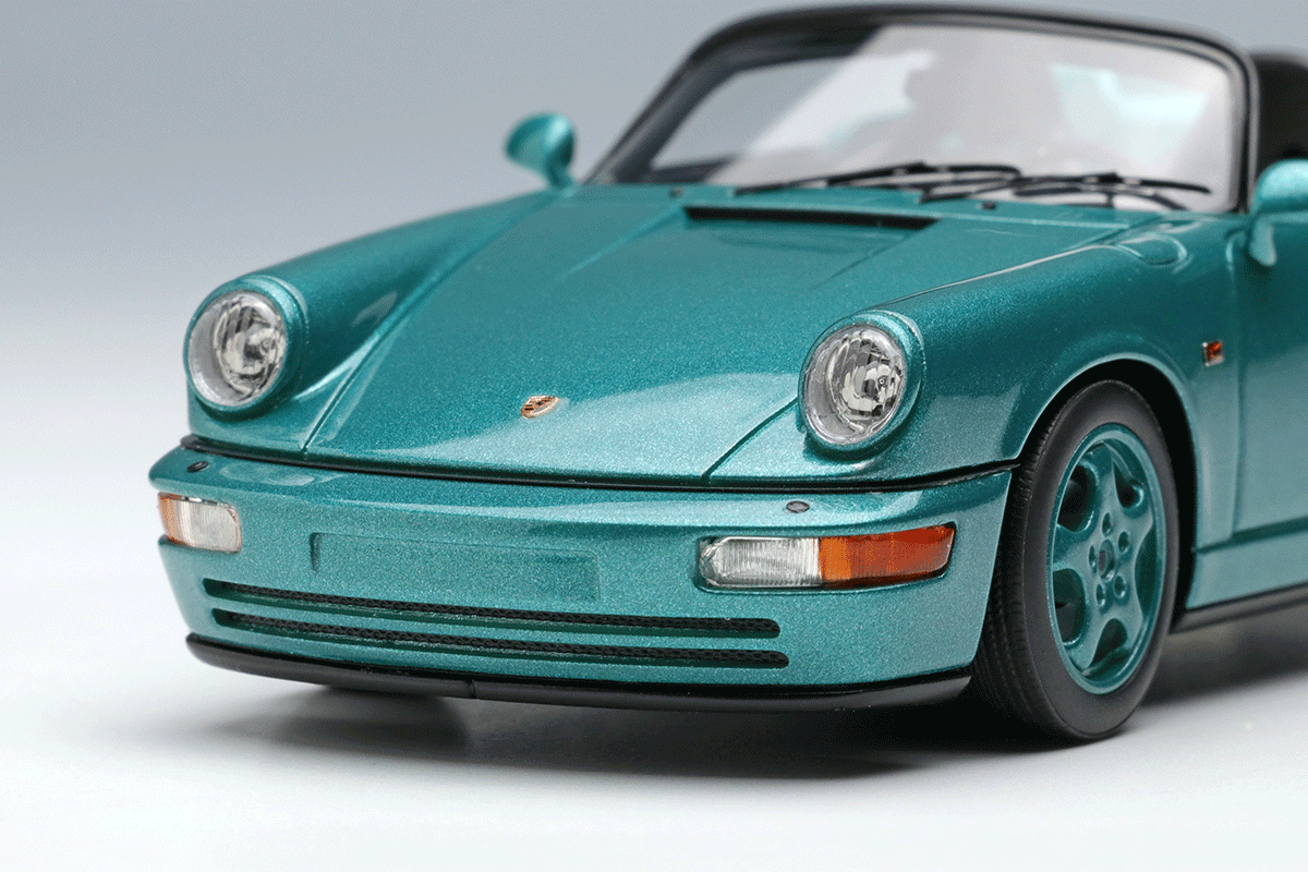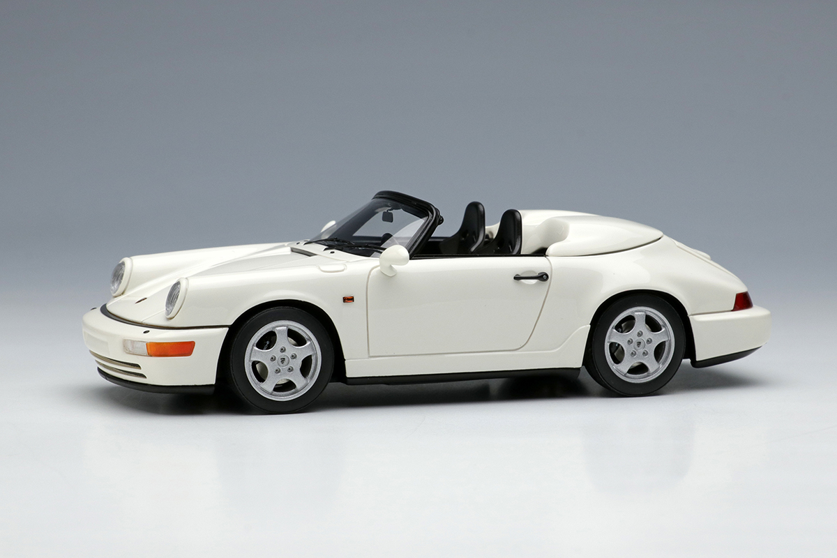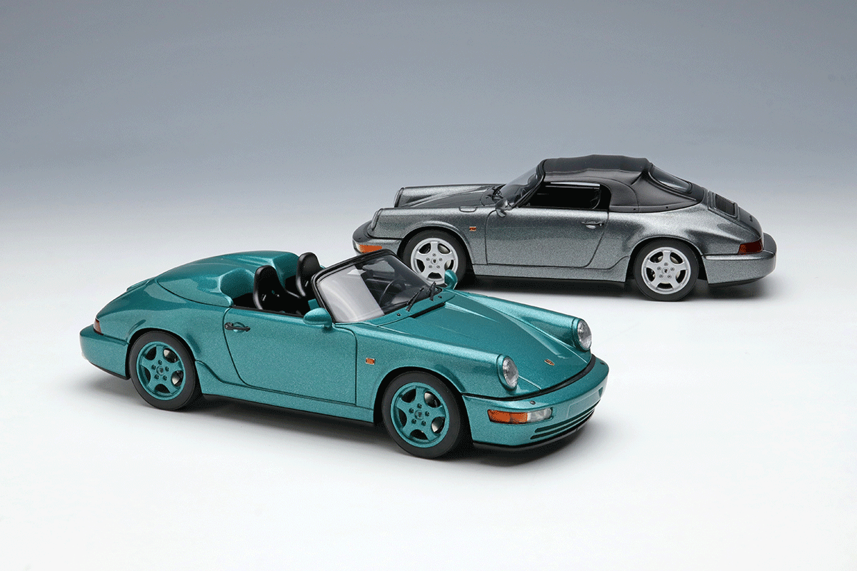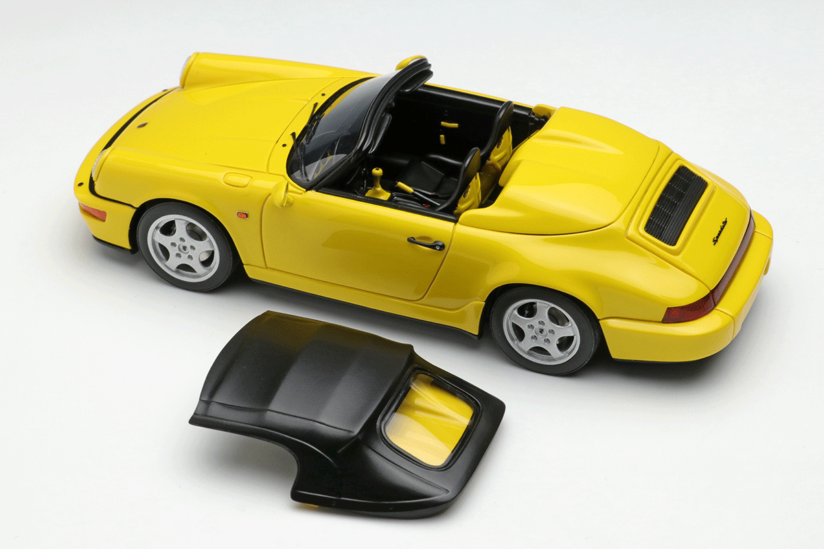 ホワイトメタル製のホイールや、リアルな灯火類の表現、そして964ならではのバリエーション豊富なボディカラーで鏡面仕上げとしたボディなどが自慢の1台を、空冷最期のスピードスターを是非コレクションに加えてください。