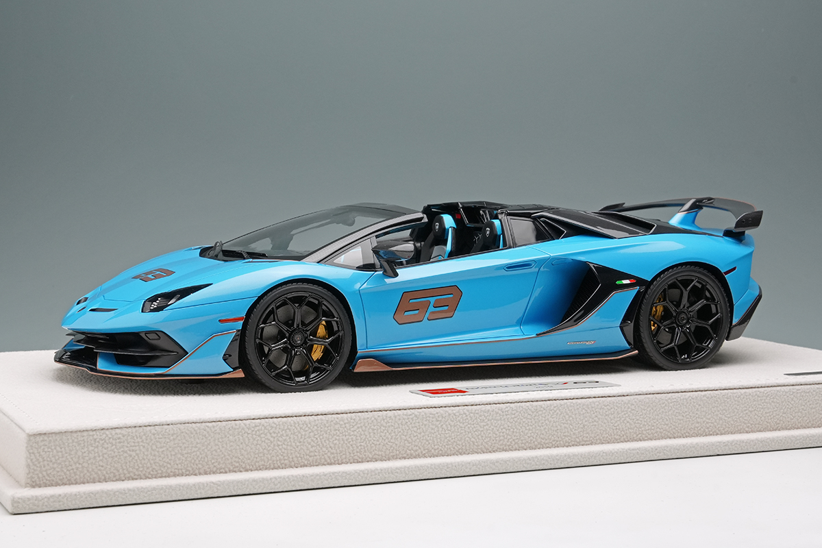 ランボルギーニの高性能限定モデルとして発売された「アヴェンタドール SVJ ロードスター」の特別仕様として発売された「アヴェンタドール SVJ 63 ロードスター」を忠実に再現したモデルになります。