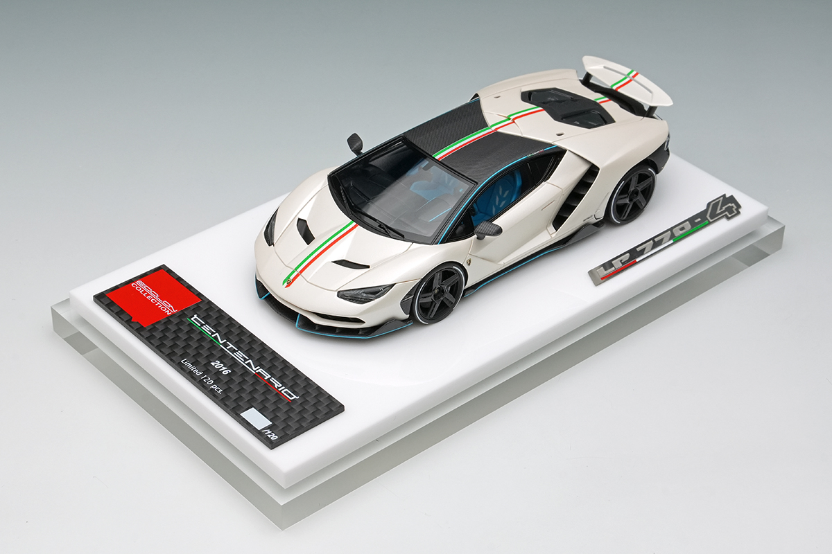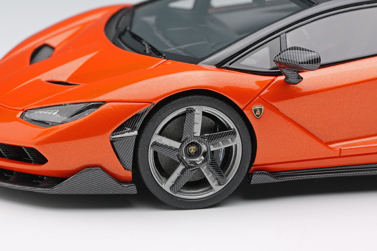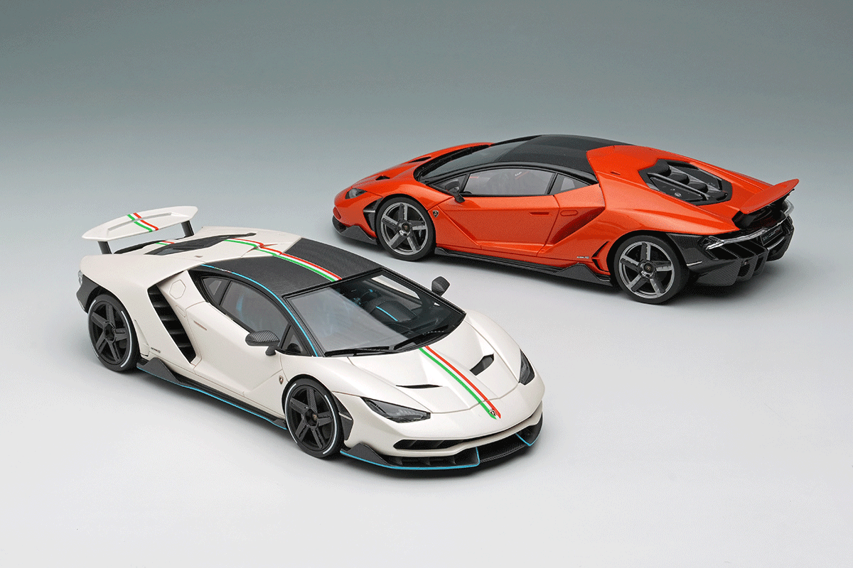 ランボルギーニの創設者「フェルッチオ・ランボルギーニ」の生誕100周年を記念して発売された「ランボルギーニ チェンテナリオ LP770-4」を忠実に再現したモデルになります。