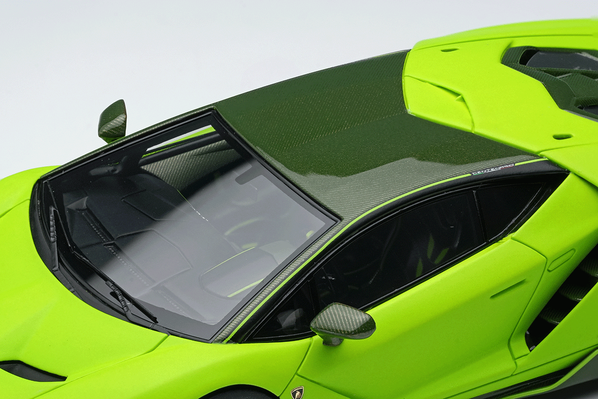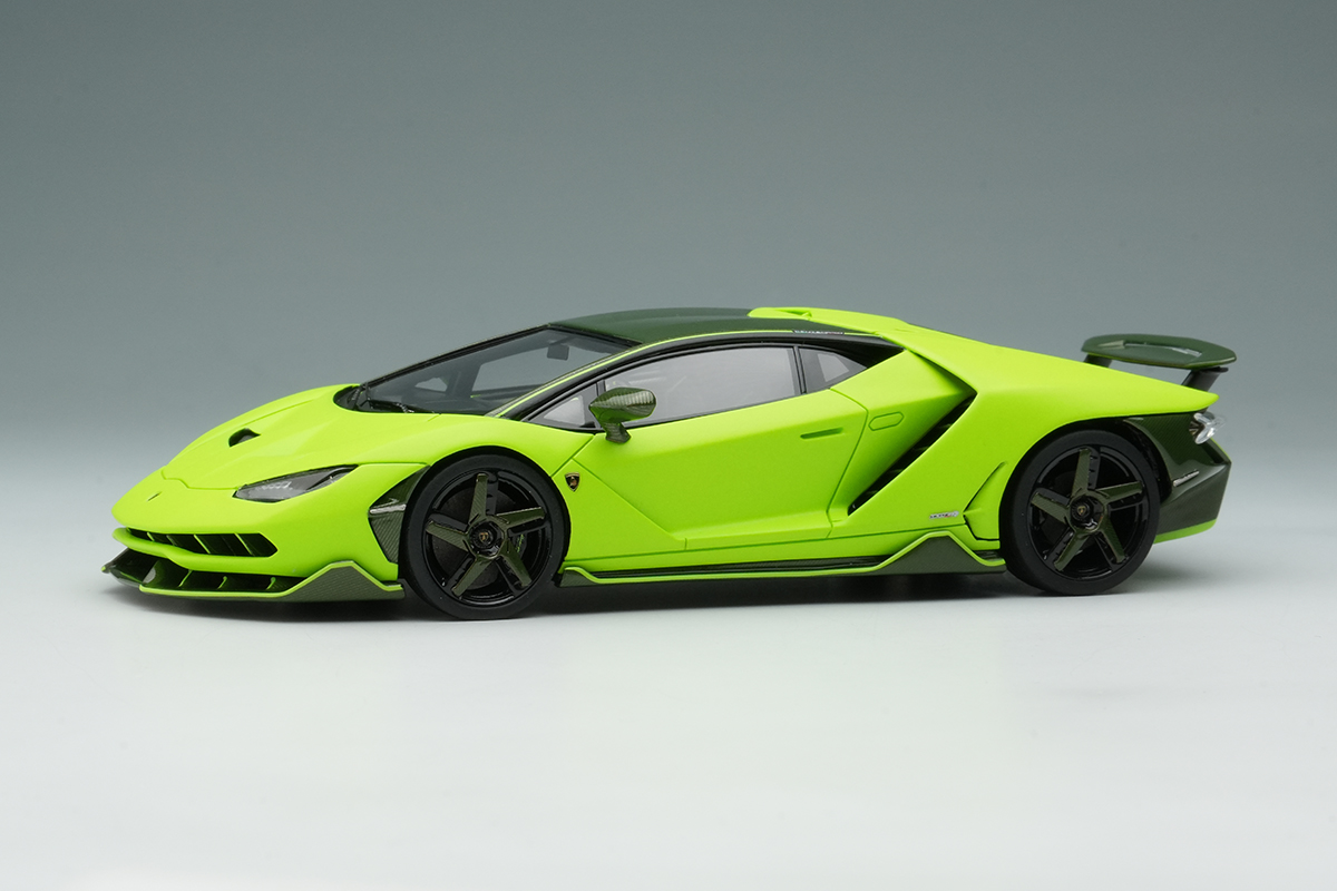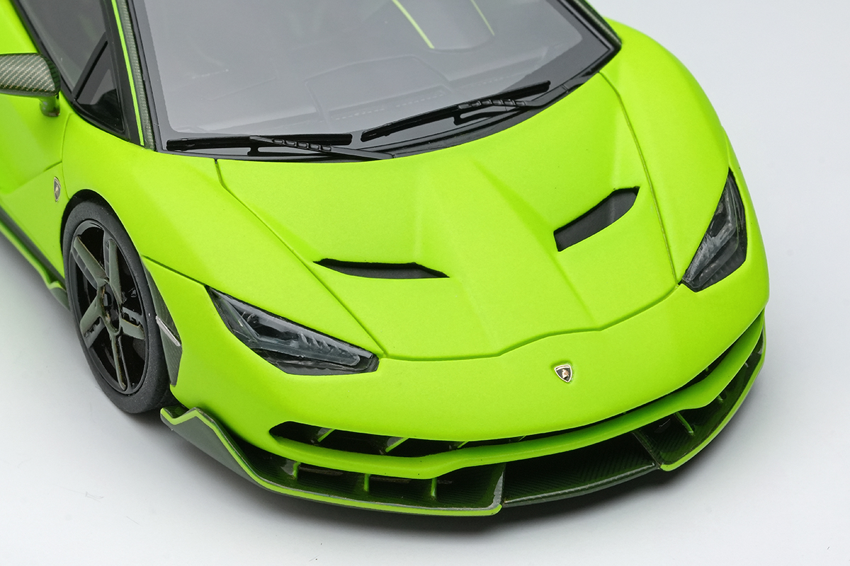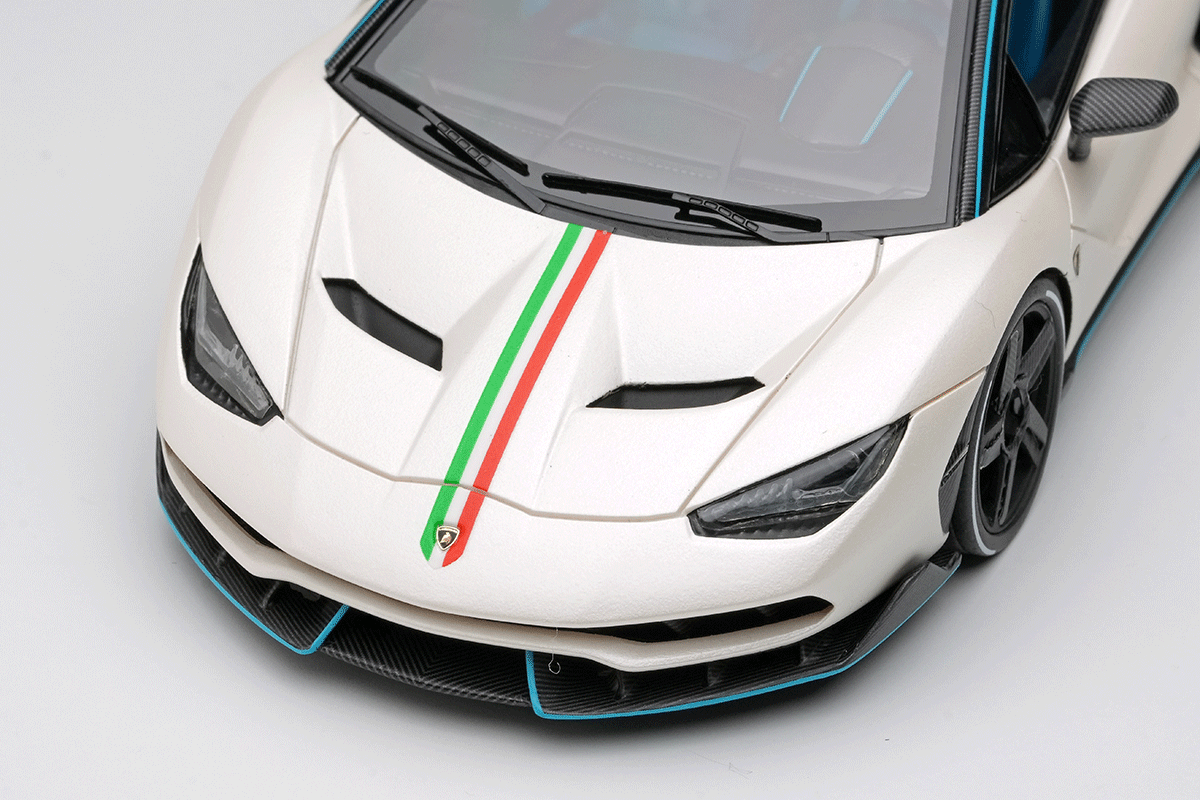 ランボルギーニの創設者「フェルッチオ・ランボルギーニ」の生誕100周年を記念して発売された「ランボルギーニ チェンテナリオ LP770-4」を忠実に再現したモデルになります。