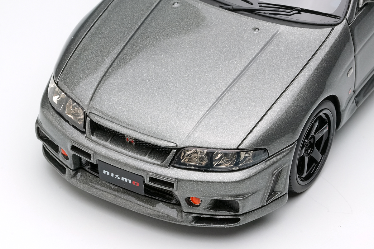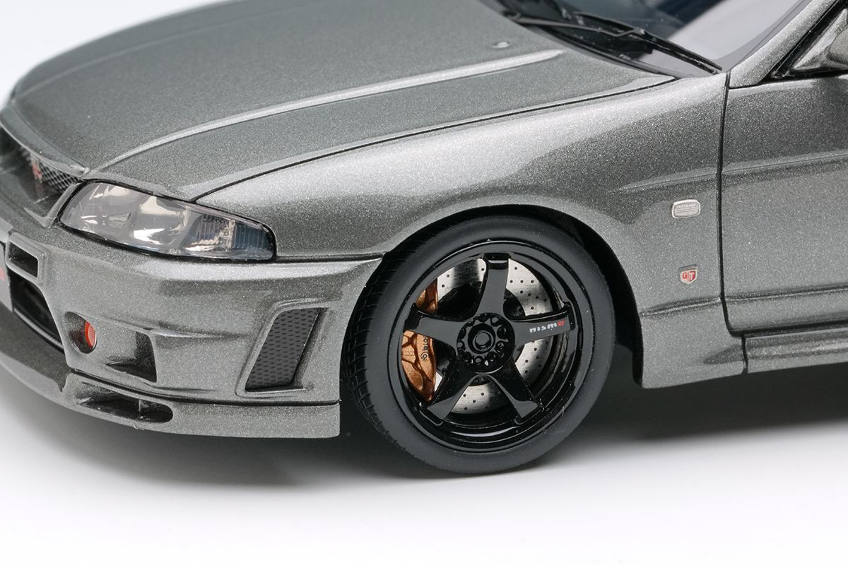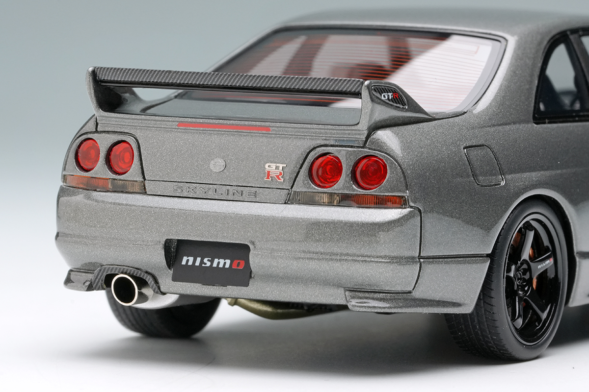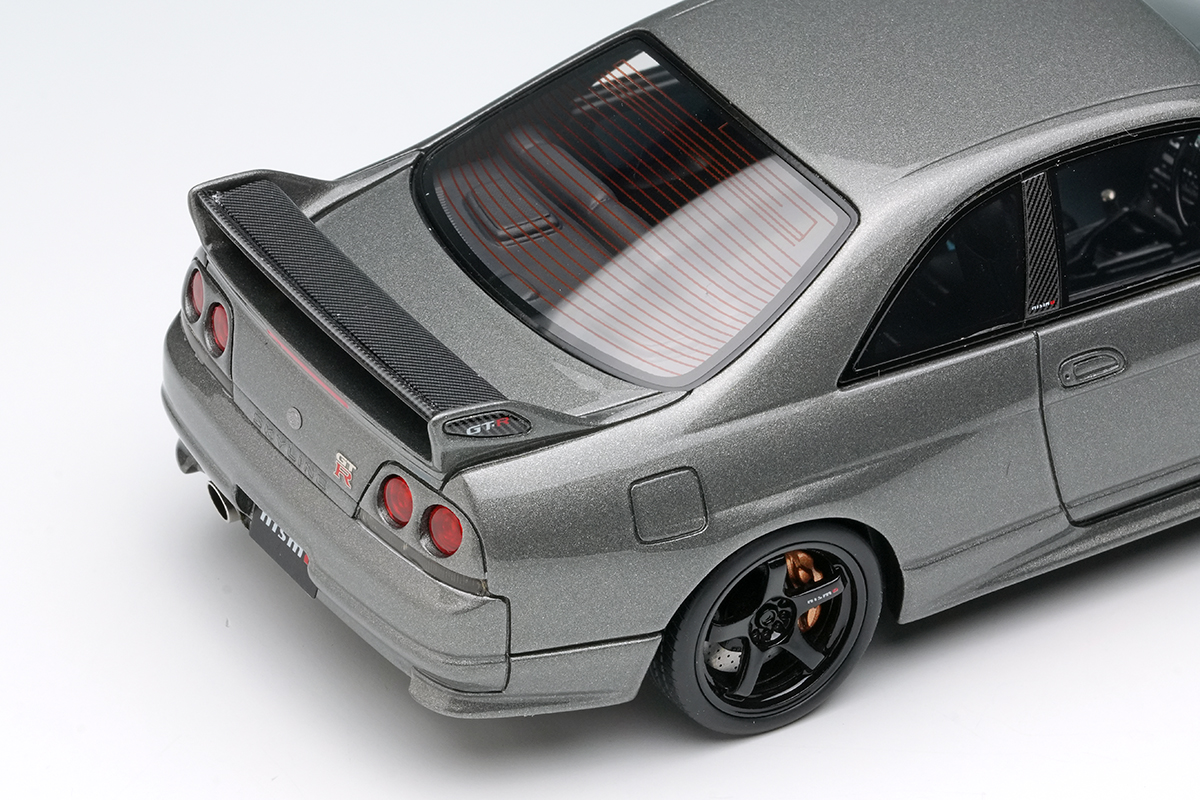 スカイラインGT-R(BCNR33)をベースに、フロントバンパーとリヤウィングをニスモ製のパーツに変更。カーボン製の2枚翼リアウィングは角度調整機能を持ち合わせたカーボン製です。