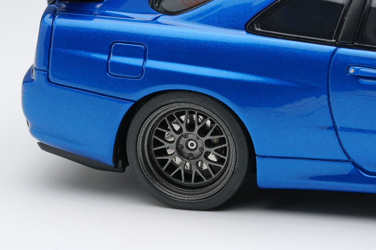 レイズ製の「VOLK RACING 21A」やAP Racingのブレーキなども再現しています。ホイールリムはガンメタリックを施しますが、シャープなエッジで再現するためにアルミ製挽物パーツを使用しています。
