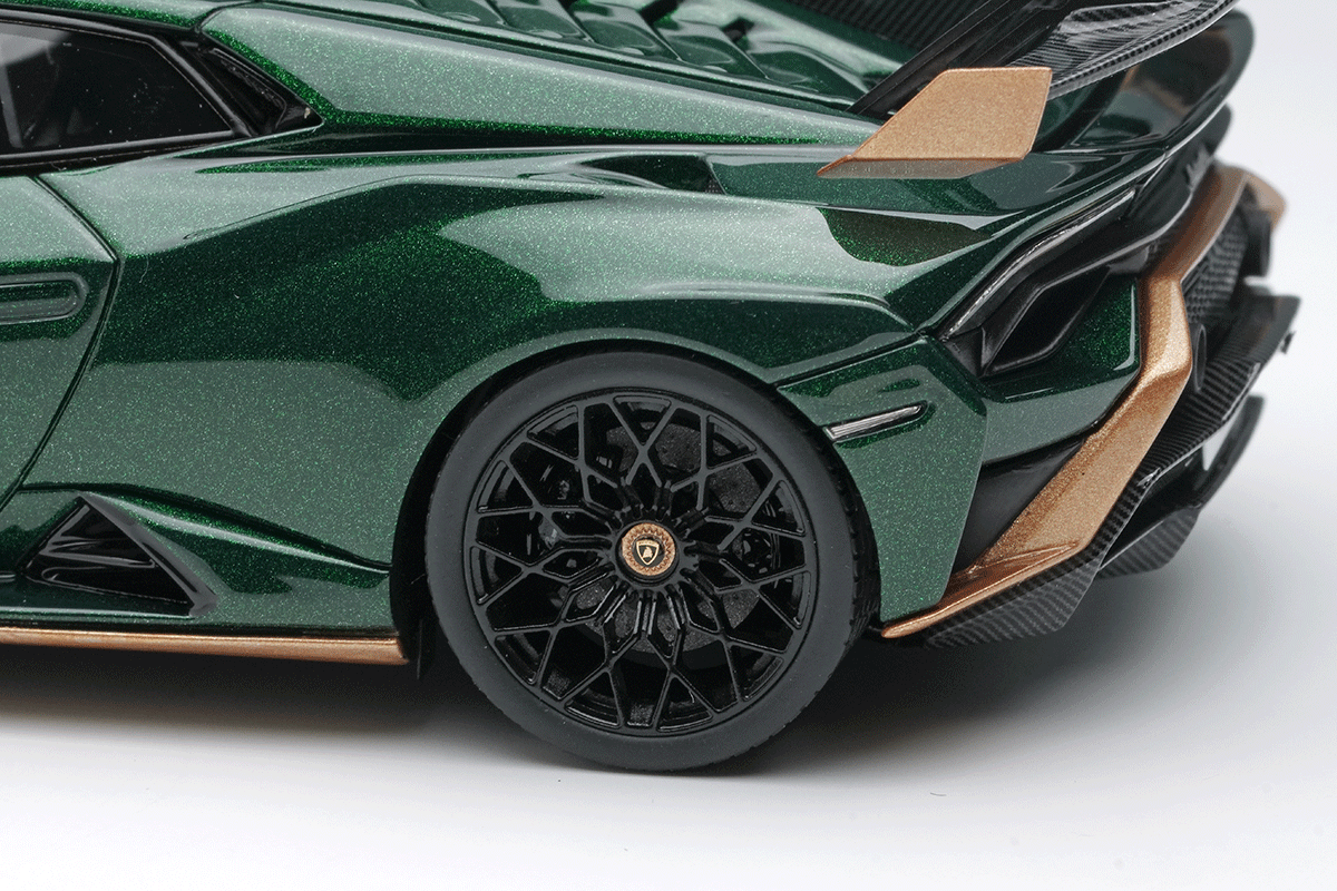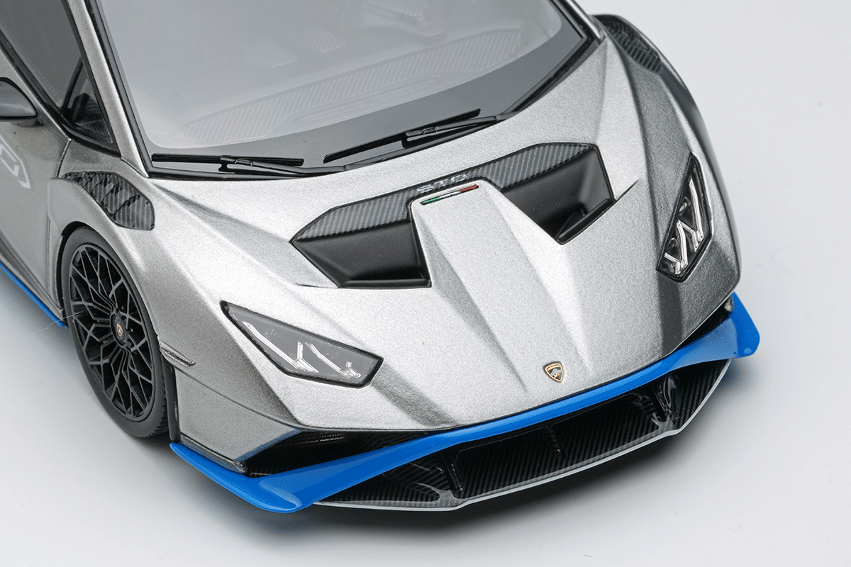 ランボルギーニのワンメイクレーシングカー「ウラカンスーパートロフェオ」を公道用にデチューンをした「ランボルギーニ ウラカン STO」を忠実に再現したモデルになります。