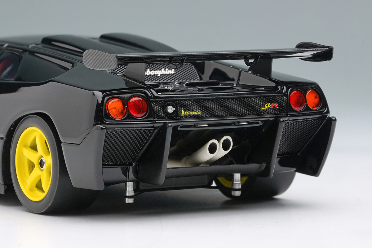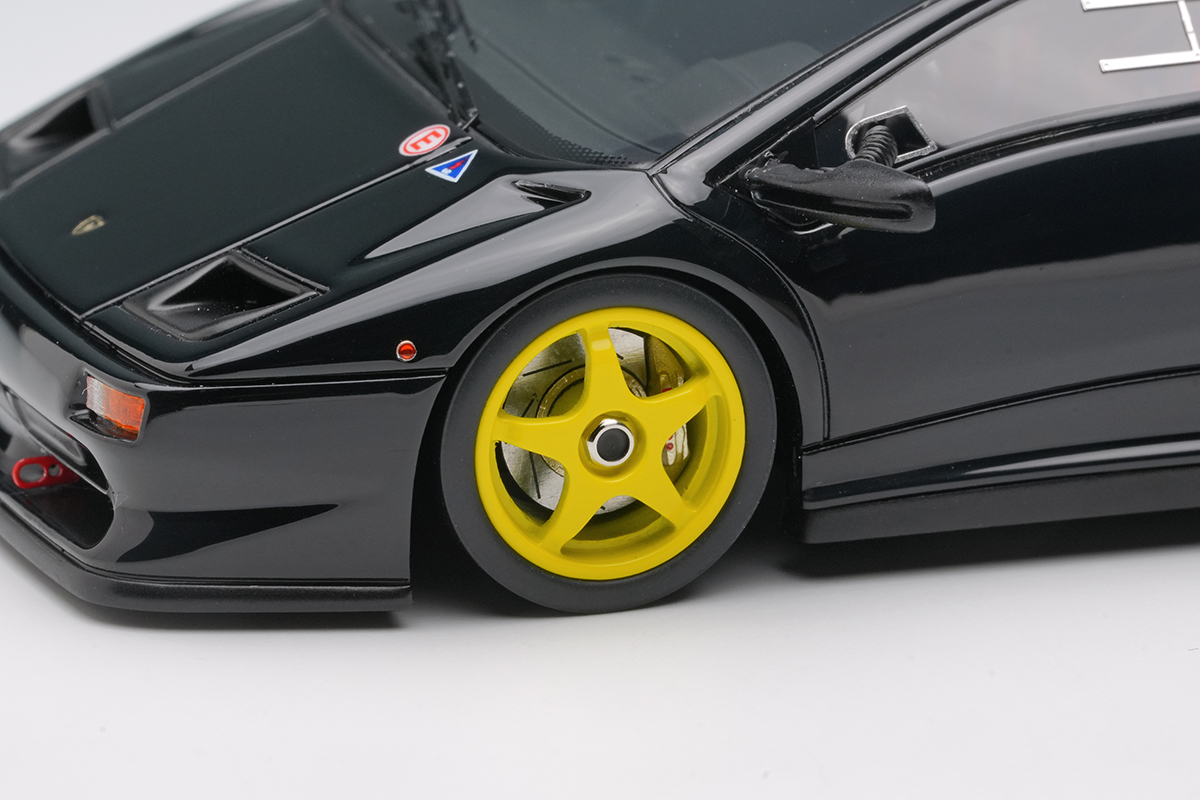 ランボルギーニ ディアブロSVをベースに軽量化などを施された「ランボルギーニ ディアブロ SVR」を忠実に再現したモデルです。今回のモデルはプロモーション時に貼られていたワンメイクレースのスポンサーロゴを追加した仕様になります。