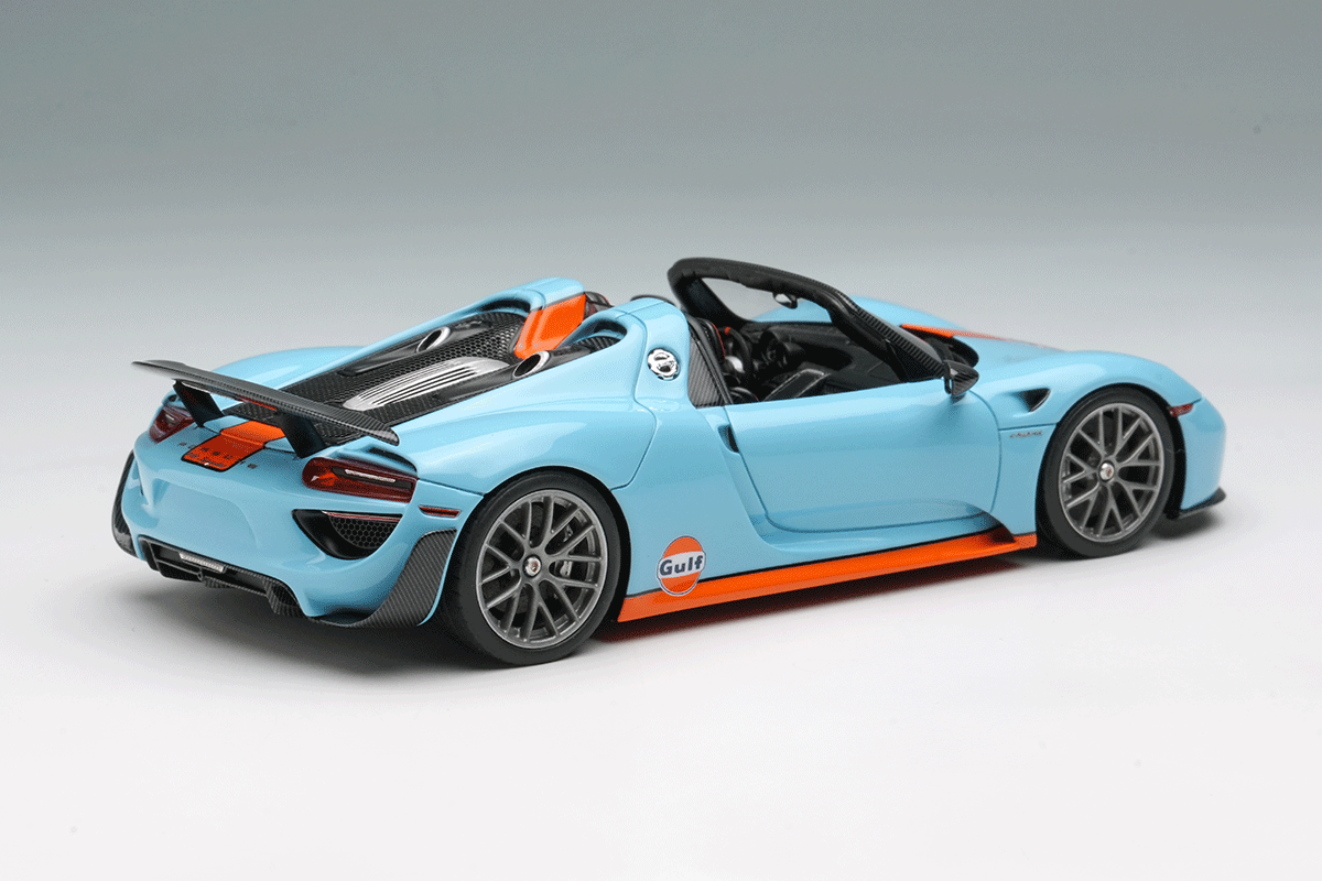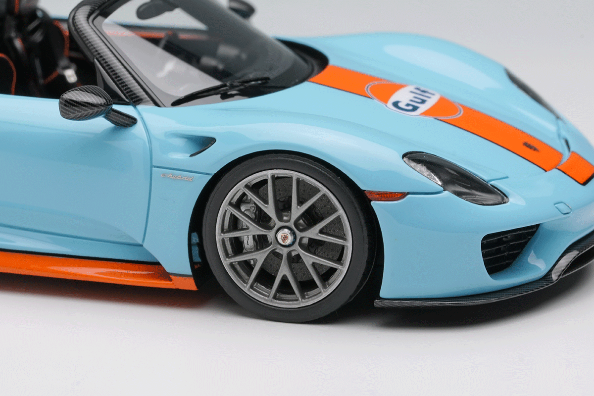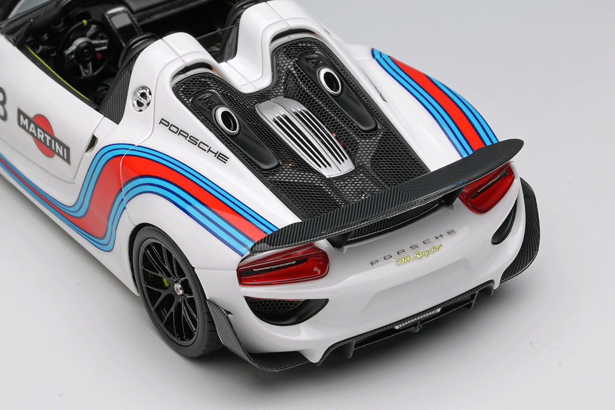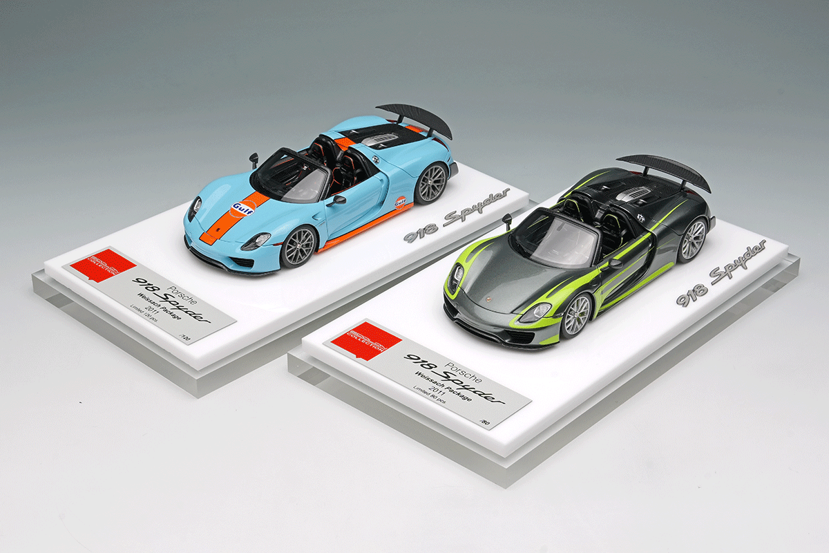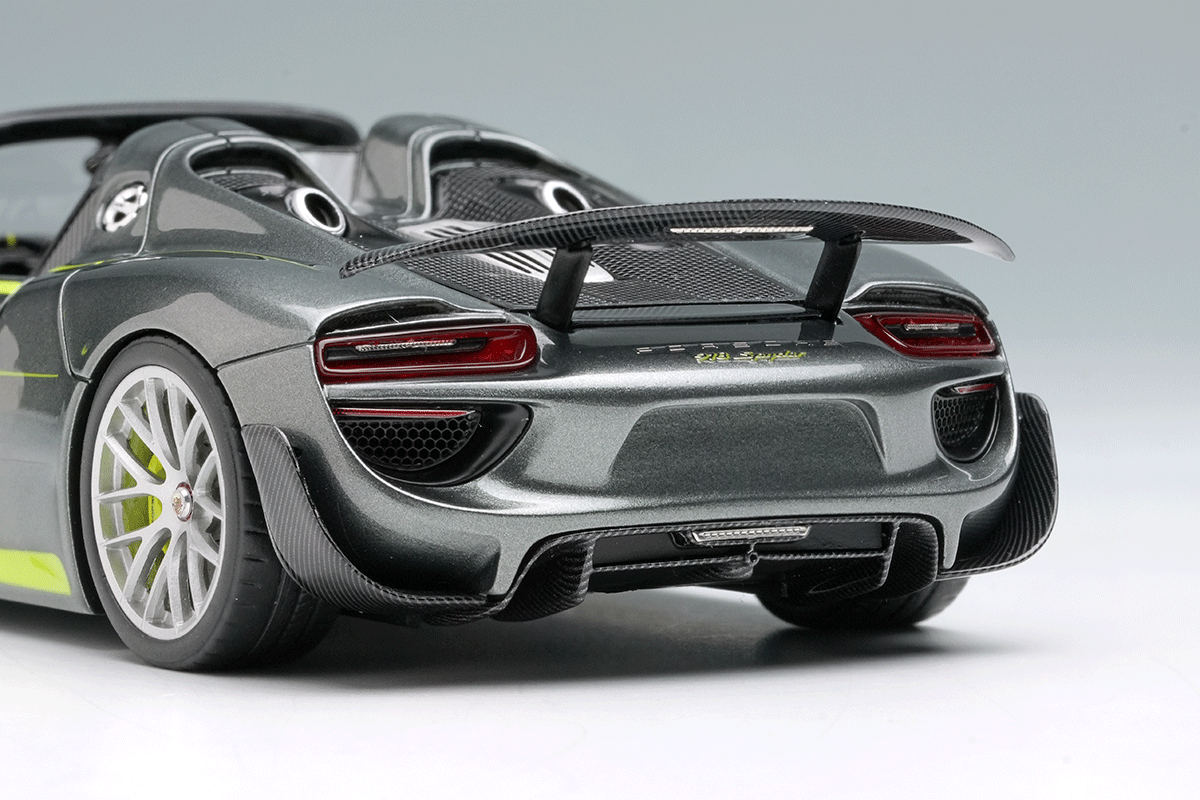 ポルシェのスペシャルモデル「ポルシェ 918 スパイダー」をさらにスパルタンなパフォーマンスパッケージを装着した「ポルシェ 918 スパイダー ヴァイザッハパッケージ」を忠実に再現したモデルになります。今回はアクティブリアウィングを展開させた姿を再現しています。