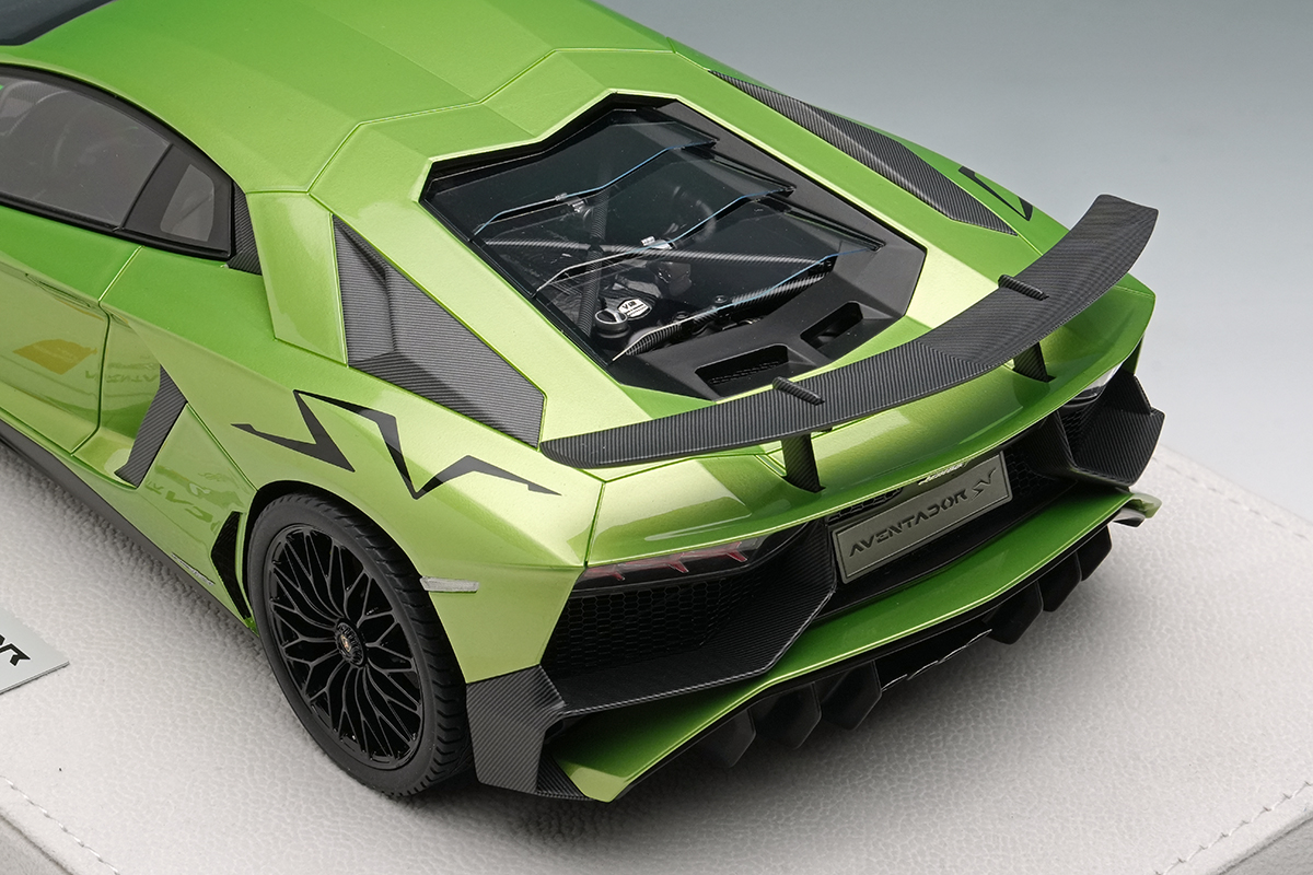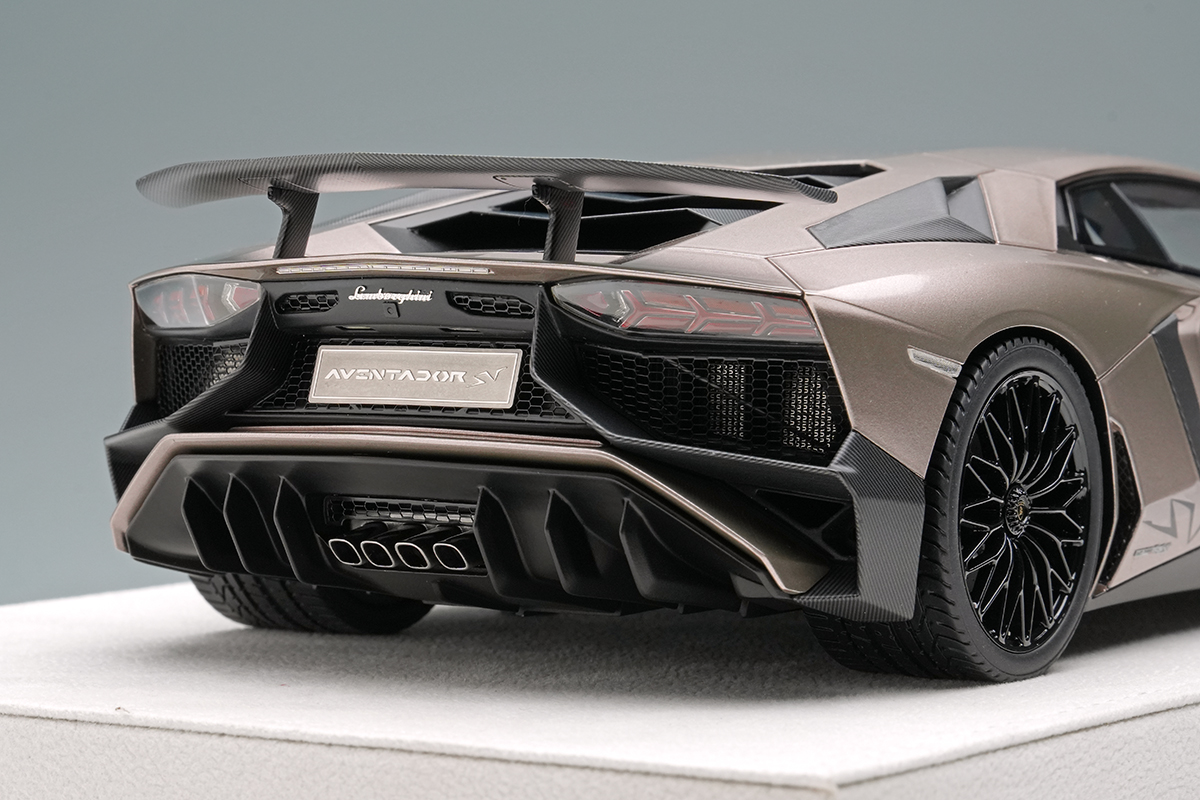 アヴェンタドールは生産期間が11年と長いこともあり、種々のバリエーションモデルが存在しますが、今回のモデル化のモチーフに選んだSV(スーパーヴェローチェ)は、2015年に当時のアヴェンタドールとしては過去最大規模の改良が行われ、エンジンの大幅なパワーアップや外装の大がかりなリファインが行われたモデルとして多くのランボルギーニファンの記憶に残っていることでしょう。
