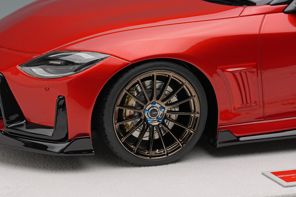 ホイールはエンケイが製造を担う、「IMPUL RS05RR Supervised by ENKEI」の20インチを再現。同ホイールの一番の見せ場である繊細な15本スポークは、インジェクション金型を用意し、そのスポーク奥に覗くブレーキシステムもIMPUL製を忠実にトレースいたしました。