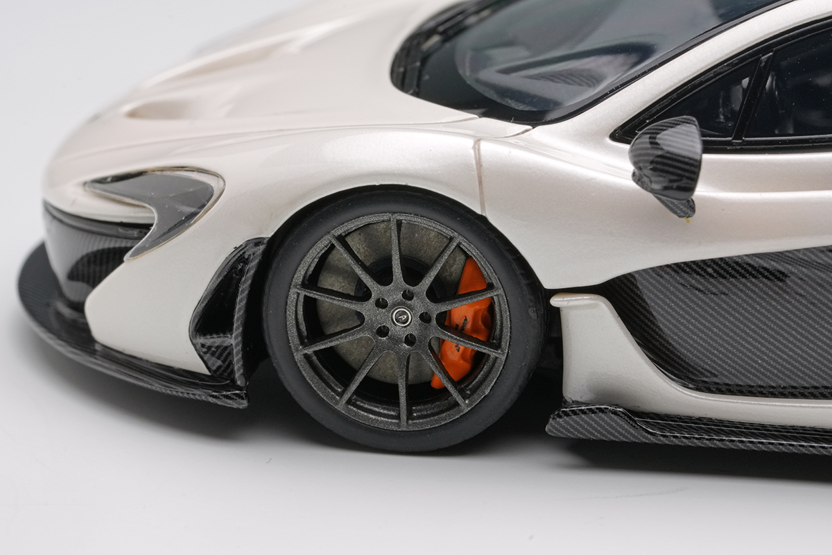 また、P1はカーボンコンポジット製のモノコックをはじめ、エクステリアの空力ディバイスのほとんどがカーボン製となっており、それらの表現にはカーボンパターンのデカールの貼り込みを行い、その上からクリアコーティング塗装を施すことによって実車さながらの雰囲気を演出いたしました。