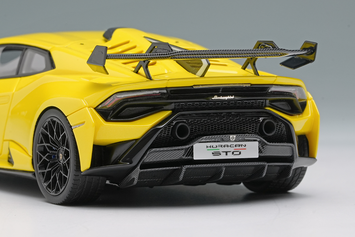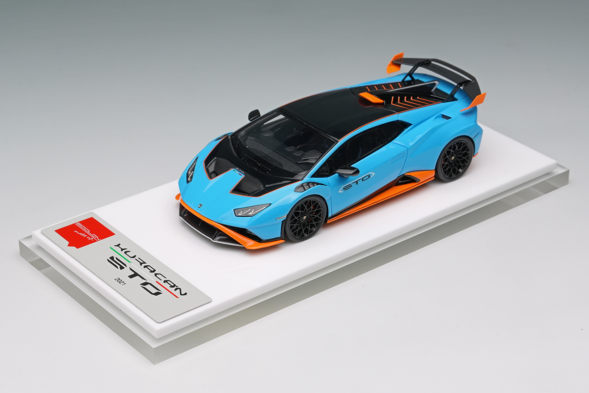 ランボルギーニのワンメイクレーシングカー「ウラカンスーパートロフェオ」を公道用にデチューンをした「ランボルギーニ ウラカン STO」を忠実に再現したモデルになります。