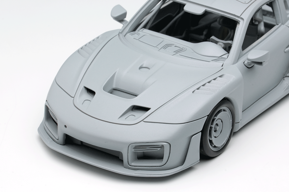 ポルシェ935/19はわずか77台が製造されたレア車ですが、今回は幸運にも日本国内に存在する実車オーナーの協力をいただき、3Dスキャンを敢行。そこで採取したデータを元に、実車の形状を客観的に捉えた原型の設計を実現いたしました。