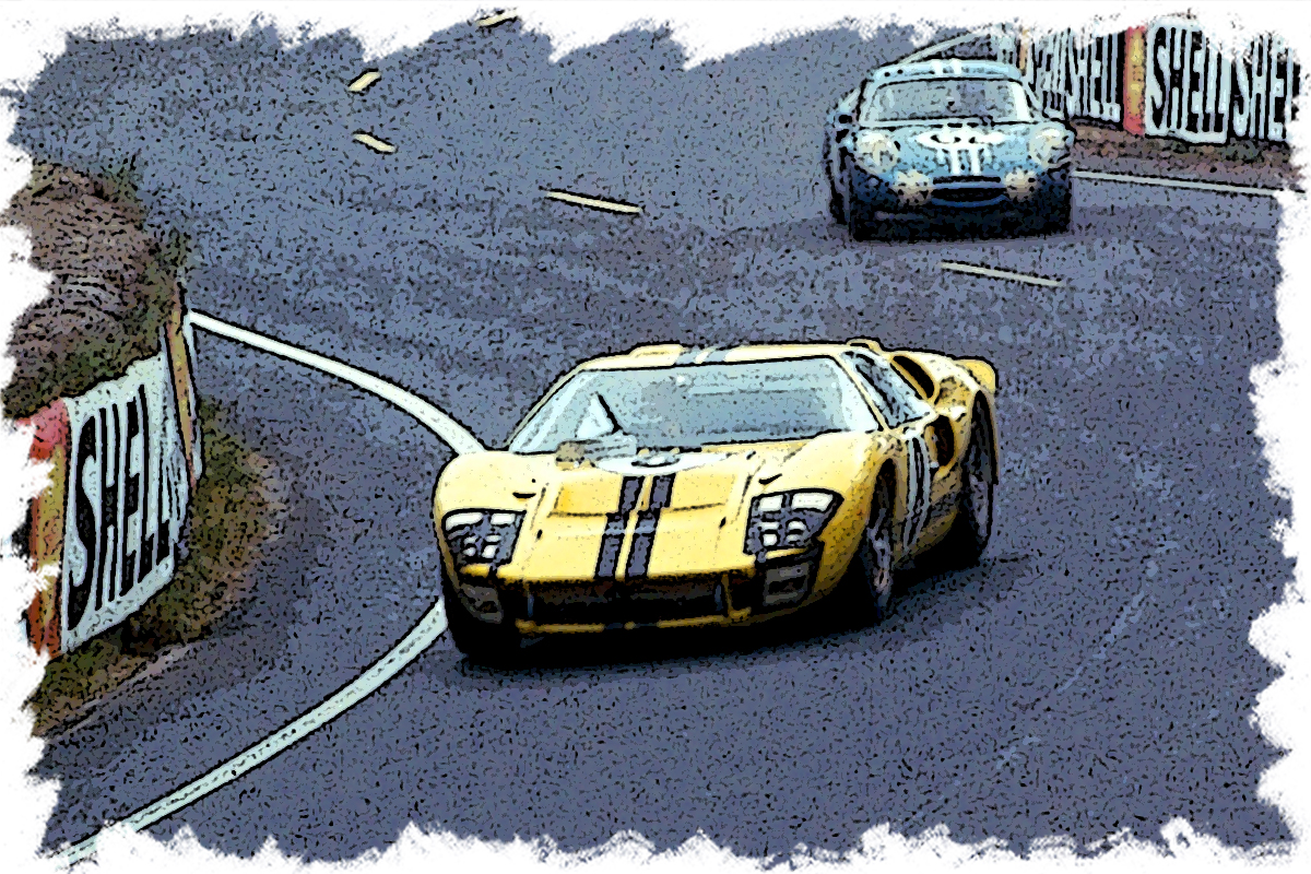 64年にレースデビューしますが、一度の完走すらできない散々な結果となってしまいました。65年からはスポーツカーレースで大きな結果をあげていたシェルビーをワークスとしてレースに参戦することになりました。65年のルマンには異常なまでのロングノーズと7Lもの大排気量のエンジンを搭載したMk.2Aをデビューさせます。Mk.2Aの2台は1周あたり4秒近く引き離すというハイペースでレースをリードしますが、ギアボックスやガスケットの吹き抜けで65年のルマンも全車リタイアという結果に終わってしまいます。