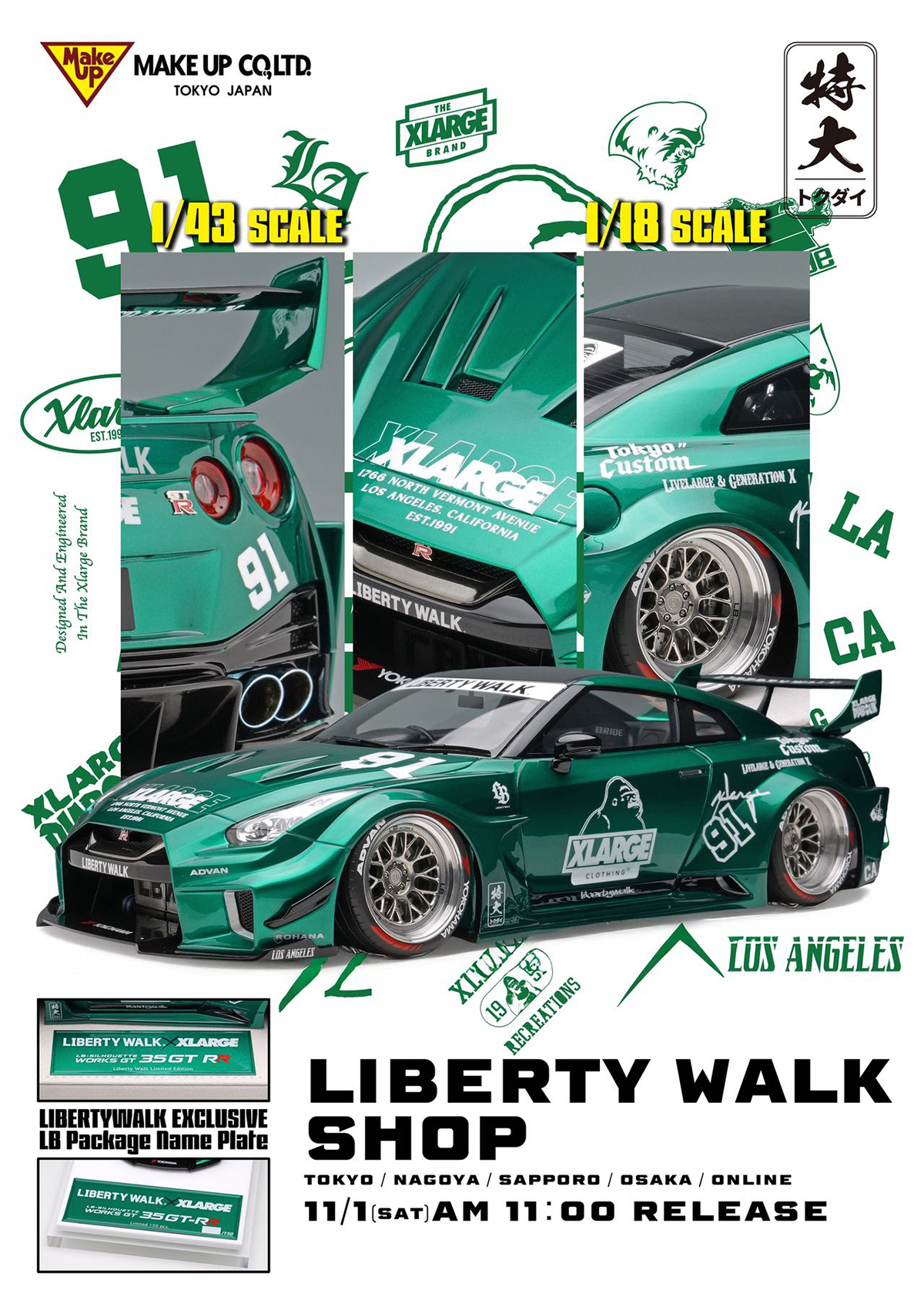 リバティーウォークとアパレルブランドの「XLARGE」のコラボレーション車両を再現したモデルカーを1/43・1/18の両スケールでリリースします。