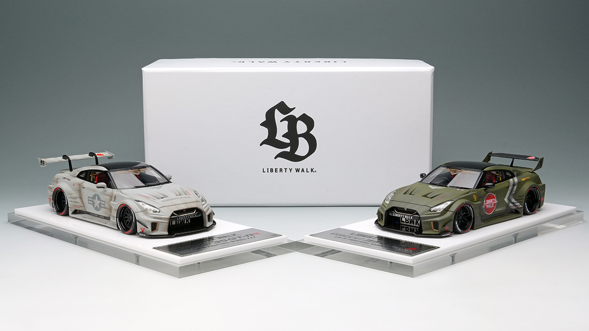 LibertyWalk様のオフィシャルストアやオンラインストアで販売する特注モデルの紹介です。 今回のモデルは「LB-Silhouette WORKS GT 35GT-RR」になります。 「リバティーウォーク」が展開するボディキット・ブランド「LB-シルエットワークス GT」シリーズから、2020年に発表された「LB-シルエットワークス GT 35GT-RR」になります。 シルエットフォーミュラならではのフェンダーのアウトレットからタイヤのトレッド面が確認できる“抜けの良い”モールドをはじめ、メリハリの利いたボディラインやシャープなウィング造形、リアルな灯火類、しっかりとフィットしたウィンドウパーツなどに拘っております。 Liberty Walk各ストア、Web Shopのみ採用される特別パッケージとネームプレートを採用いたしました。 ■LB-Silhouette WORKS GT 35GT-RR Matte Dark Green (限定150台) 価格 42,000円(税込) ■LB-Silhouette WORKS GT 35GT-RR GT Wing ver. Matte Gray (限定150台) 価格 42,000円(税込) ■発売日 10/11(土) 11:00~ ・WEB SHOP 11:00~ ・名古屋 1-178 Setogawa-cho, Owariasahi-shi, Aichi-ken, Japan. 愛知県尾張旭市瀬戸川町1丁目178番地リバティーウォーク本社 Open all year round. 10:00 - 19:00 ・東京 26-3, Jingumae 4-chome, Shibuya-ku, Tokyo, Japan 〒150-0001 東京都渋谷区神宮前4丁目26−3 Open all year round. 11:00 - 20:00 ・札幌 3-11-1 Minamisanjo Nishi, Chuo-ku, Sapporo, Hokkaido 〒060-0063 北海道札幌市中央区南三条西3丁目11-1 Open all year round. 12:00 - 22:00 ・大阪1ST 1F, STAR HILLS, 1 Chome 3-13 Kitahorie, Osaka City Osaka 550-0014, Japan 〒550-0014 大阪市西区北堀江1-3-13 STAR HILLS 1F Open all year round. 11:00 - 20:00 他にも特別仕様のモデルも発売中です! 在庫や他の特注品、発売日などの詳細につきましては LB★STORE 様へお問い合わせください。 https://lbwk.jp LB★STORE 〒488-0023愛知県尾張旭市瀬戸川町2-9 EIDOLON、VISION、IDEA、Titan64 製造/販売元 株式会社メイクアップ 〒107-0062 東京都港区南青山5-14-5 TEL 03-3498-9876 FAX 03-3498-9875