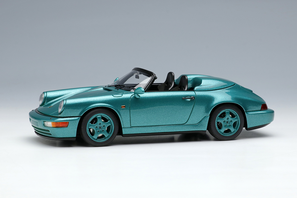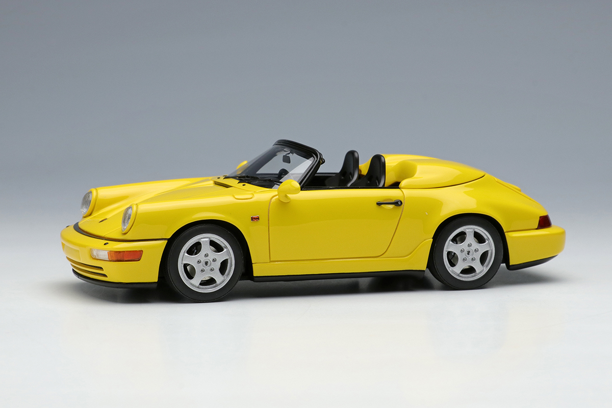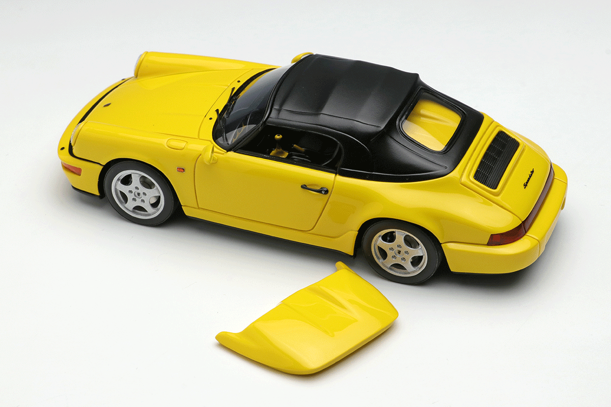 ホワイトメタル製のホイールや、リアルな灯火類の表現、そして964ならではのバリエーション豊富なボディカラーで鏡面仕上げとしたボディなどが自慢の1台を、空冷最期のスピードスターを是非コレクションに加えてください。