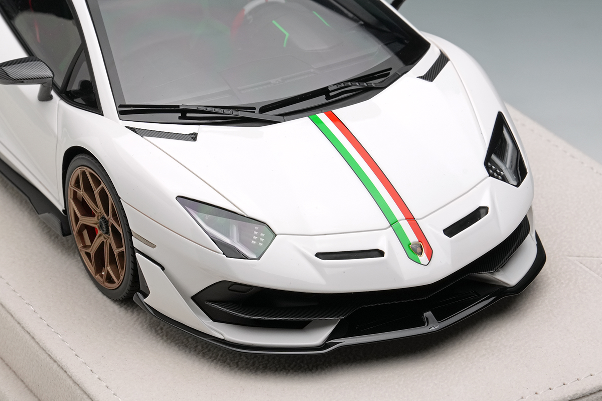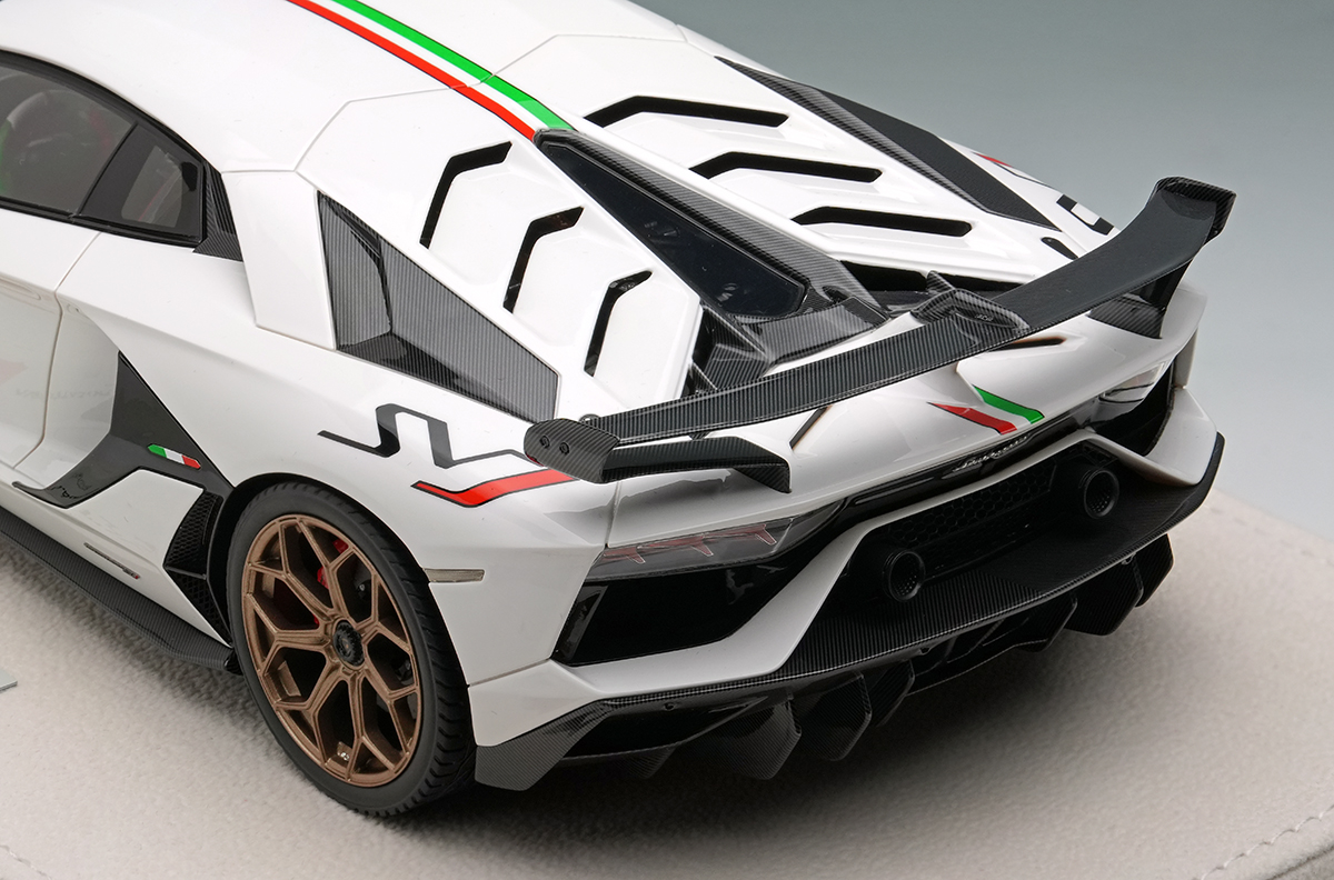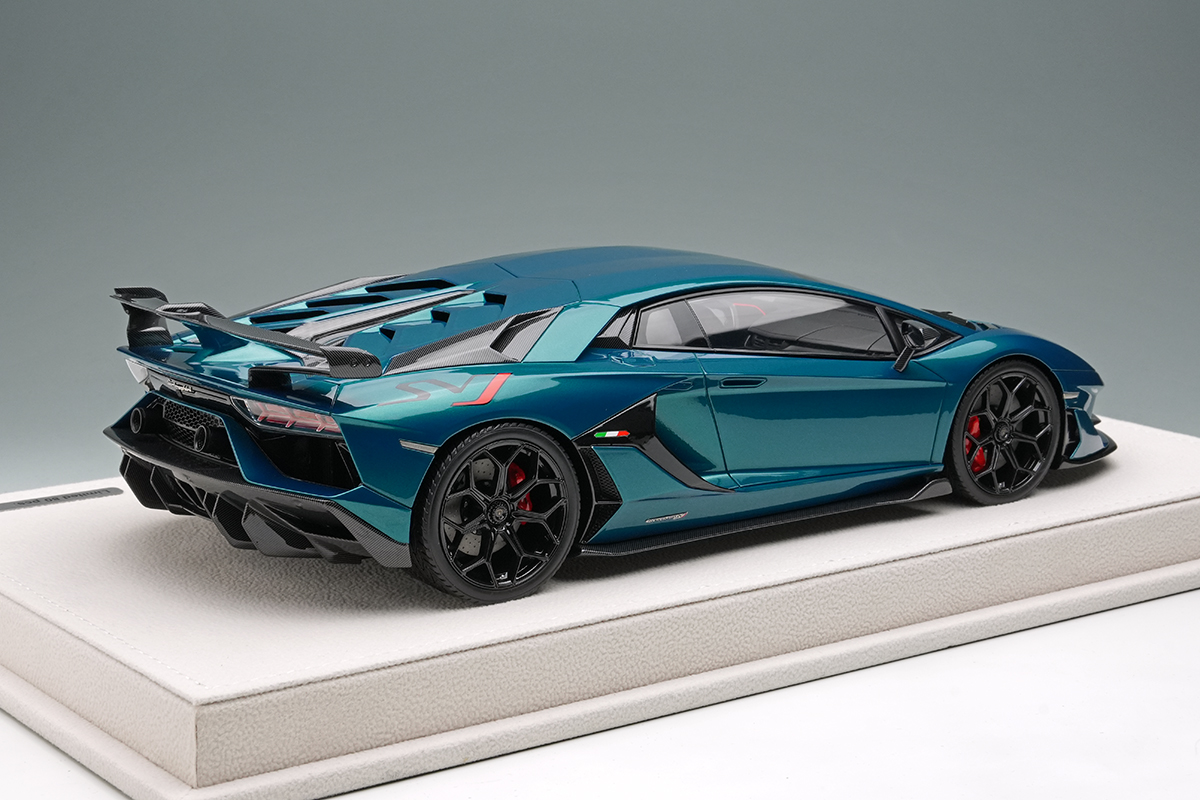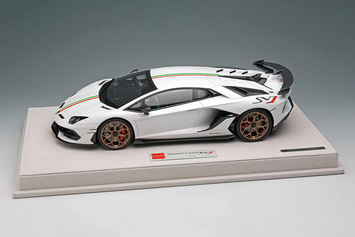近現代のランボルギーニのモデル化に力を入れる弊社としては、ランボルギーニ車にとって特別な意味を持つ、SVJのサブネームを戴いた同車は1/43だけでなく1/18でのリリースも必須でした。