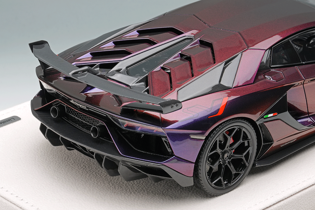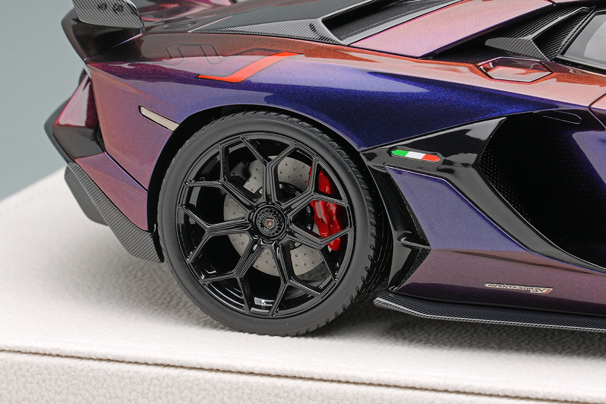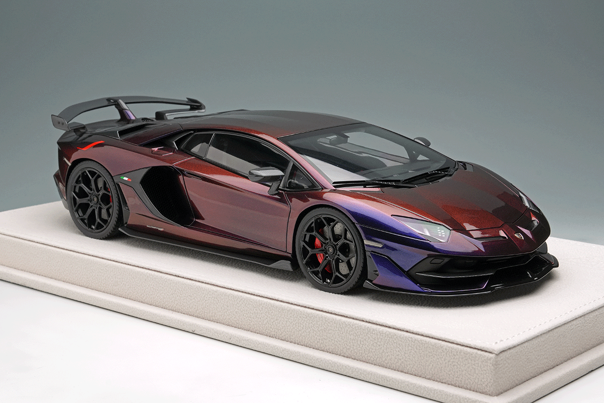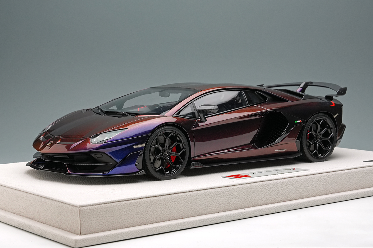 近現代のランボルギーニのモデル化に力を入れる弊社としては、ランボルギーニ車にとって特別な意味を持つ、SVJのサブネームを戴いた同車は1/43だけでなく1/18でのリリースも必須でした。