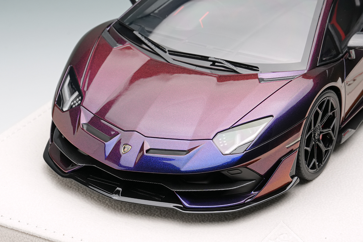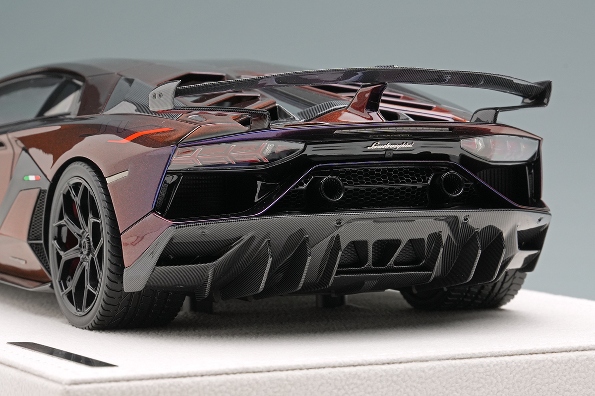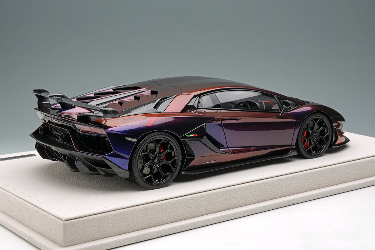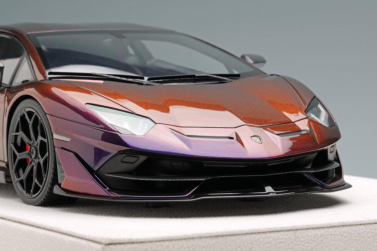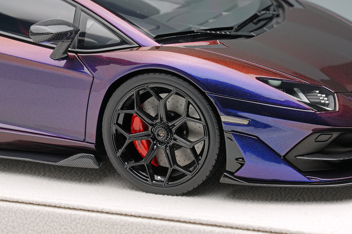 近現代のランボルギーニのモデル化に力を入れる弊社としては、ランボルギーニ車にとって特別な意味を持つ、SVJのサブネームを戴いた同車は1/43だけでなく1/18でのリリースも必須でした。