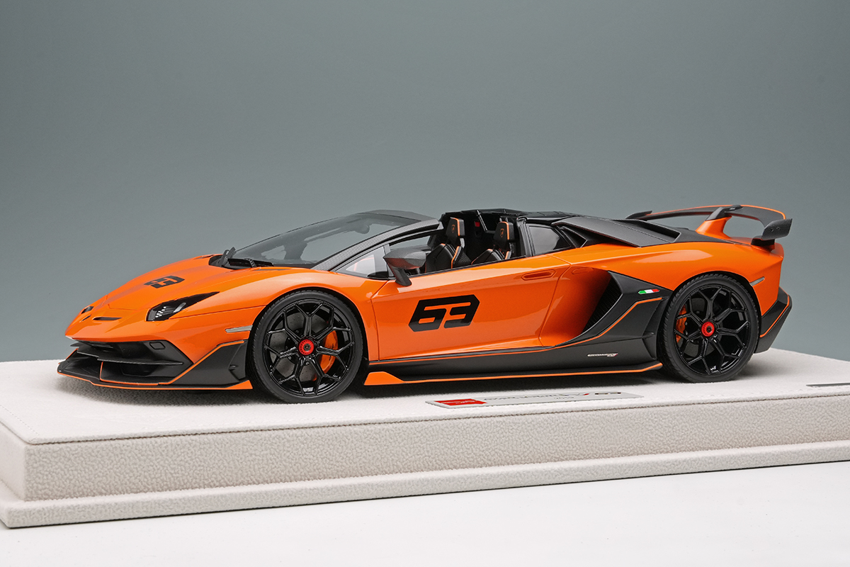 ランボルギーニの高性能限定モデルとして発売された「アヴェンタドール SVJ ロードスター」の特別仕様として発売された「アヴェンタドール SVJ 63 ロードスター」を忠実に再現したモデルになります。