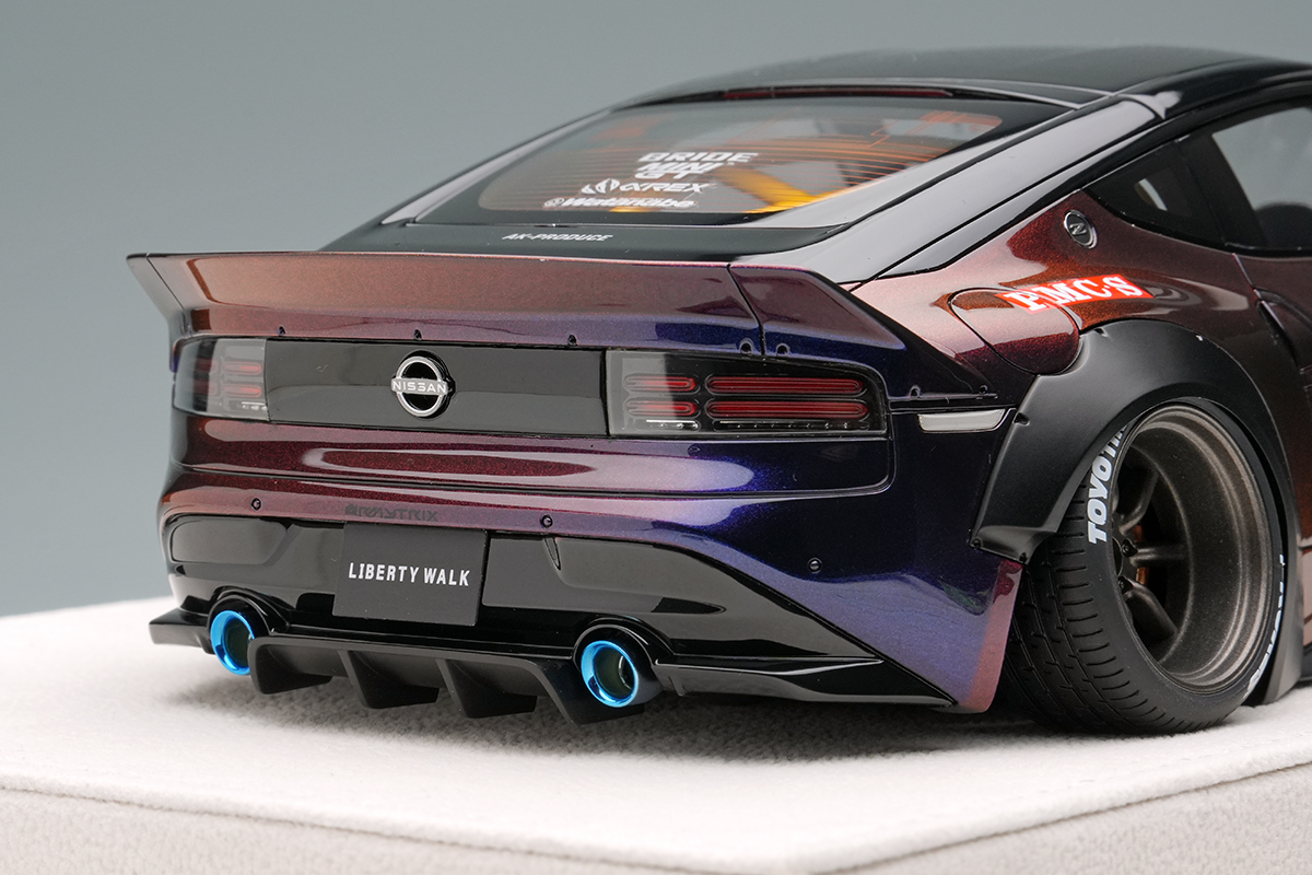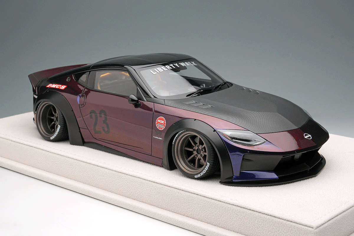 今回は、日本のオーバーフェンダーカスタムをけん引する、愛知県のリバティーウォークのボディキットを装着した「lb nation フェアレディZを題材に選んでいます。