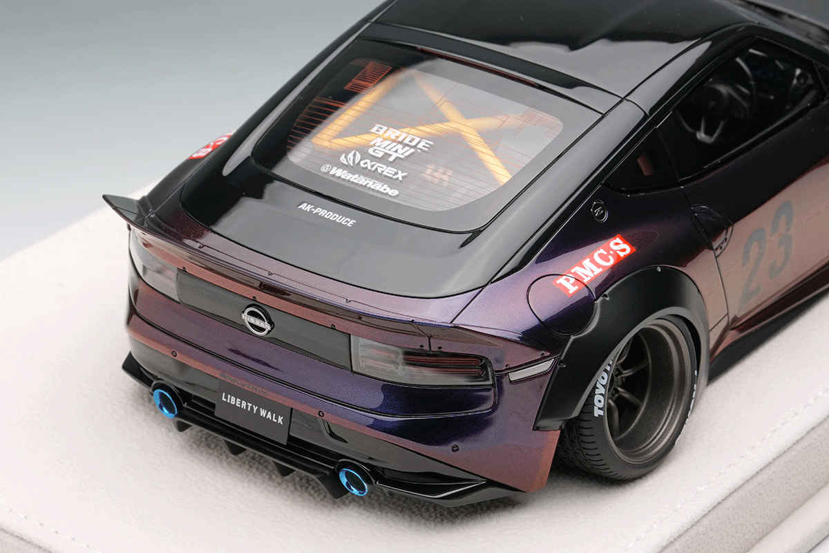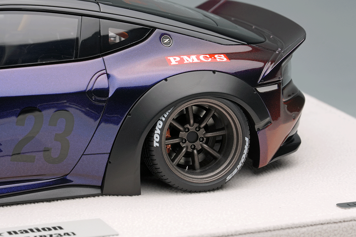 リバティーウォークの「lb nation」ブランドより発売されたエアロキットを装着した「lb nation フェアレディZ(RSワタナベ 8スポークホイール)」忠実に再現したモデルとなります。