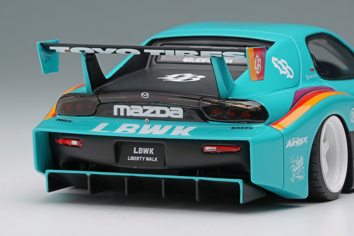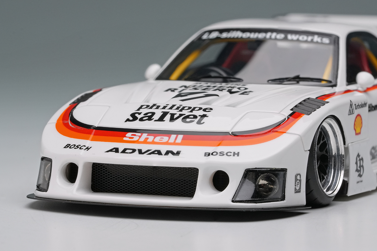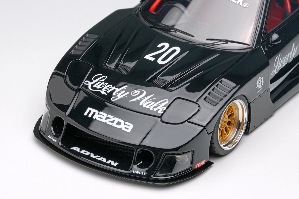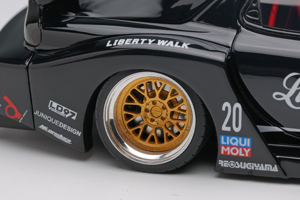日本の街道レーサー・スタイルにヒントを得てデザインされたボディキットをまとった「LB-スーパーシルエット マツダ FD3S RX-7」を忠実に再現したモデルとなります。