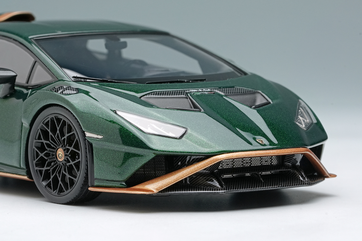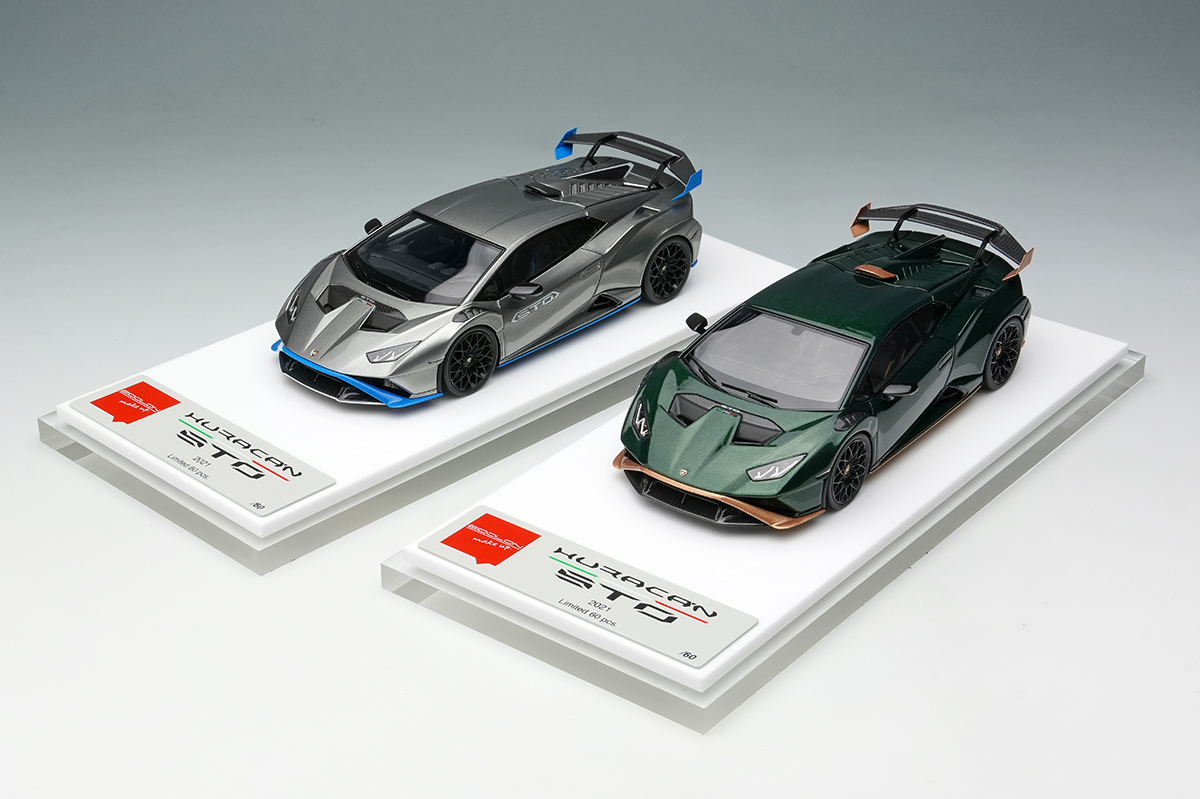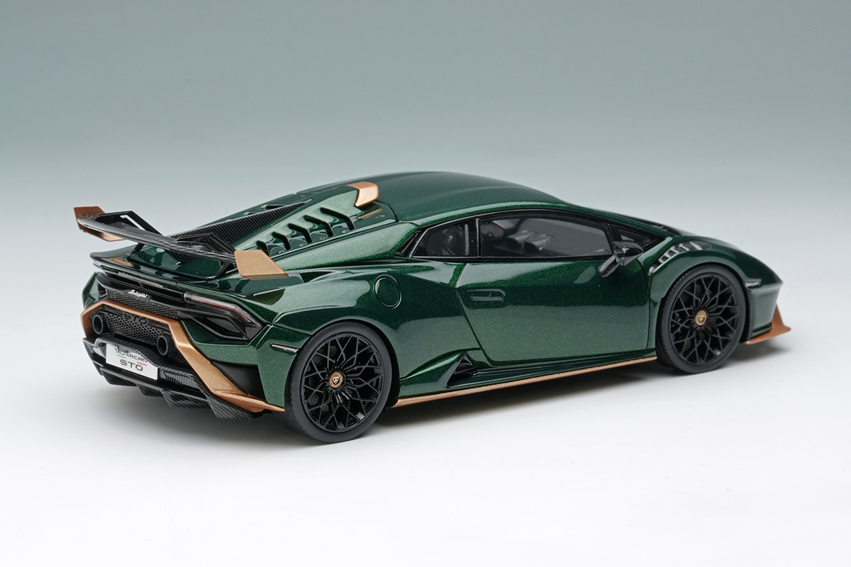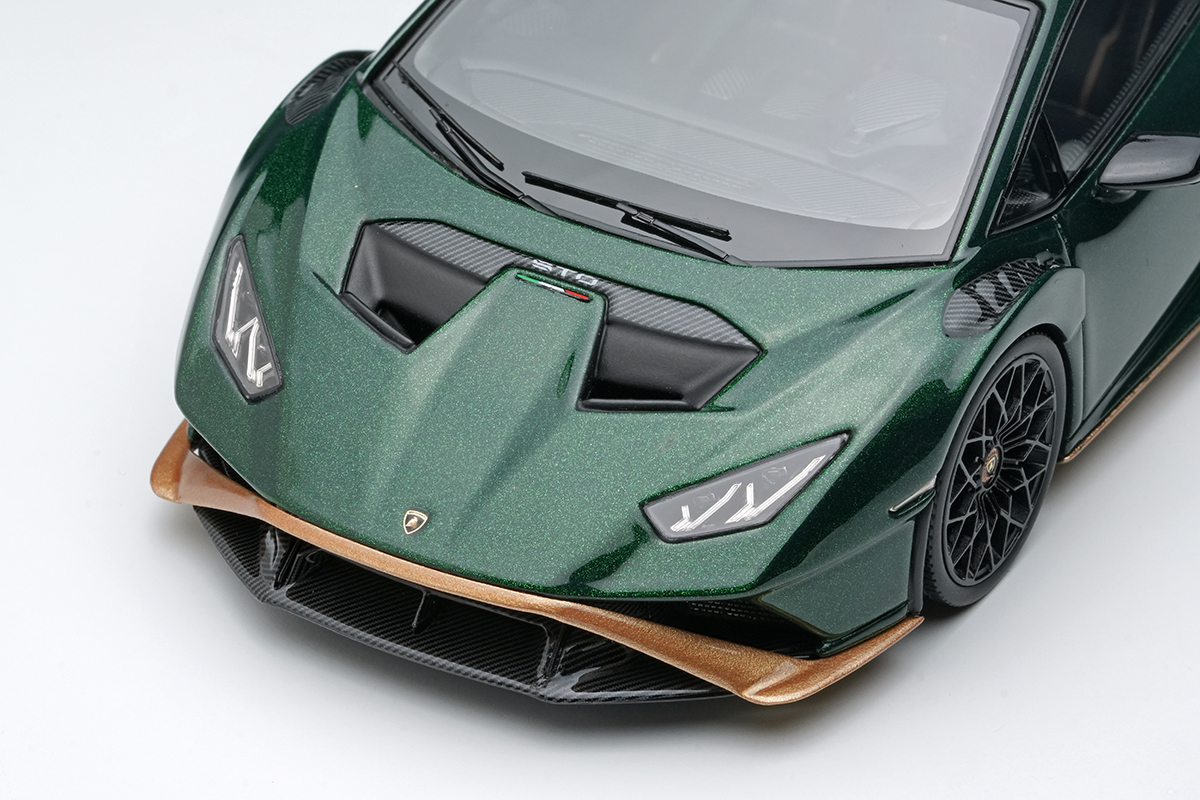 ランボルギーニのワンメイクレーシングカー「ウラカンスーパートロフェオ」を公道用にデチューンをした「ランボルギーニ ウラカン STO」を忠実に再現したモデルになります。
