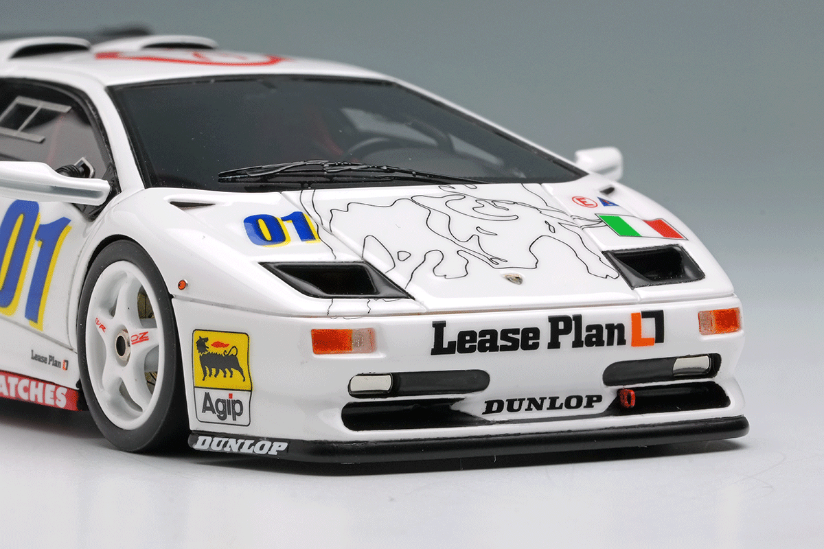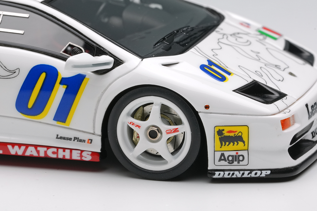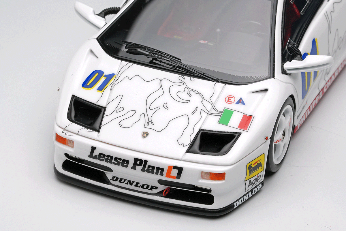 ランボルギーニ ディアブロSVをベースに軽量化などを施された「ランボルギーニ ディアブロ SVR」を忠実に再現したモデルです。今回のモデルはプロモーション時に貼られていたワンメイクレースのスポンサーロゴを追加した仕様になります。