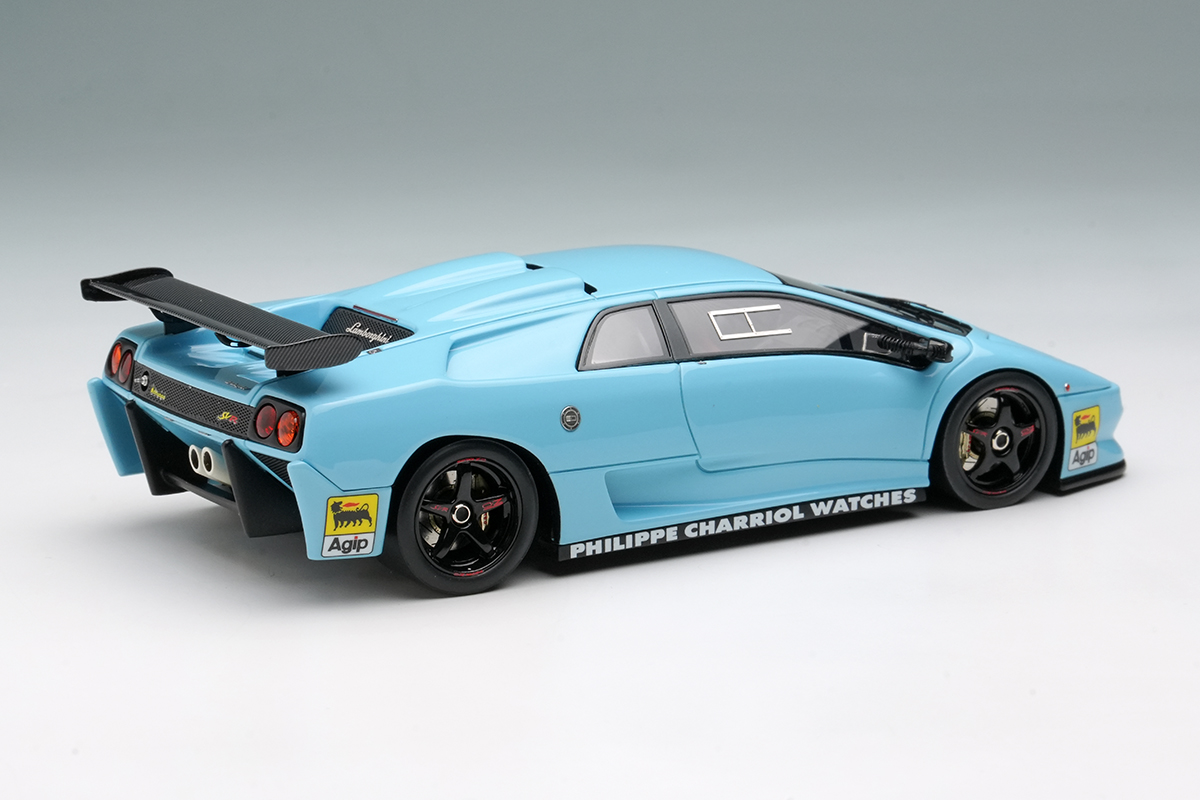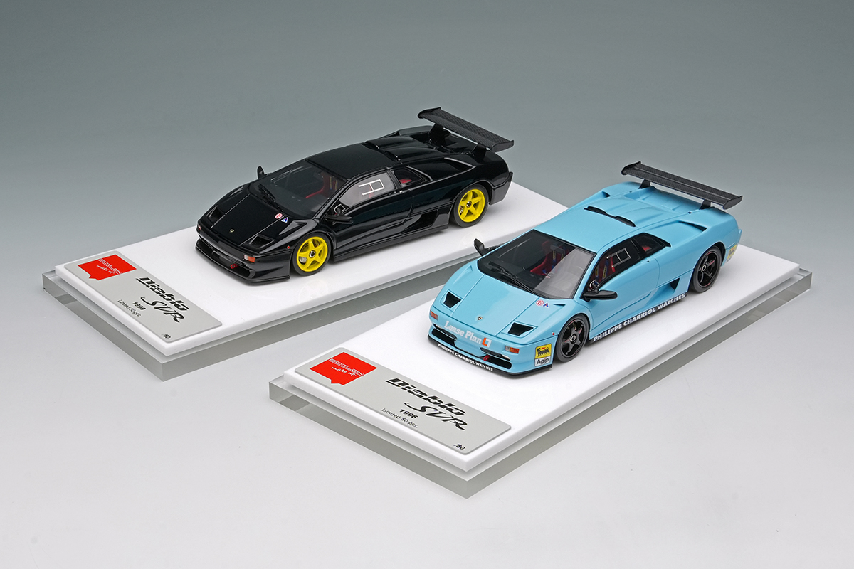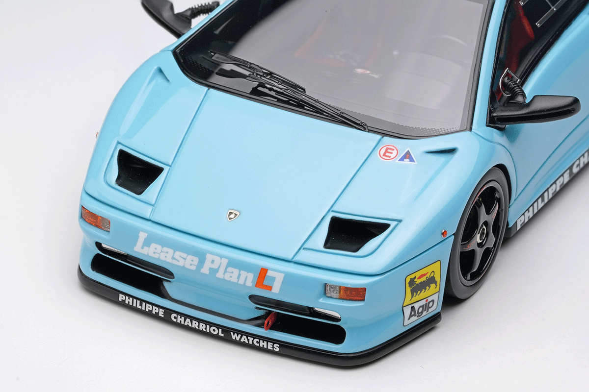 ランボルギーニ ディアブロSVをベースに軽量化などを施された「ランボルギーニ ディアブロ SVR」を忠実に再現したモデルです。今回のモデルはプロモーション時に貼られていたワンメイクレースのスポンサーロゴを追加した仕様になります。