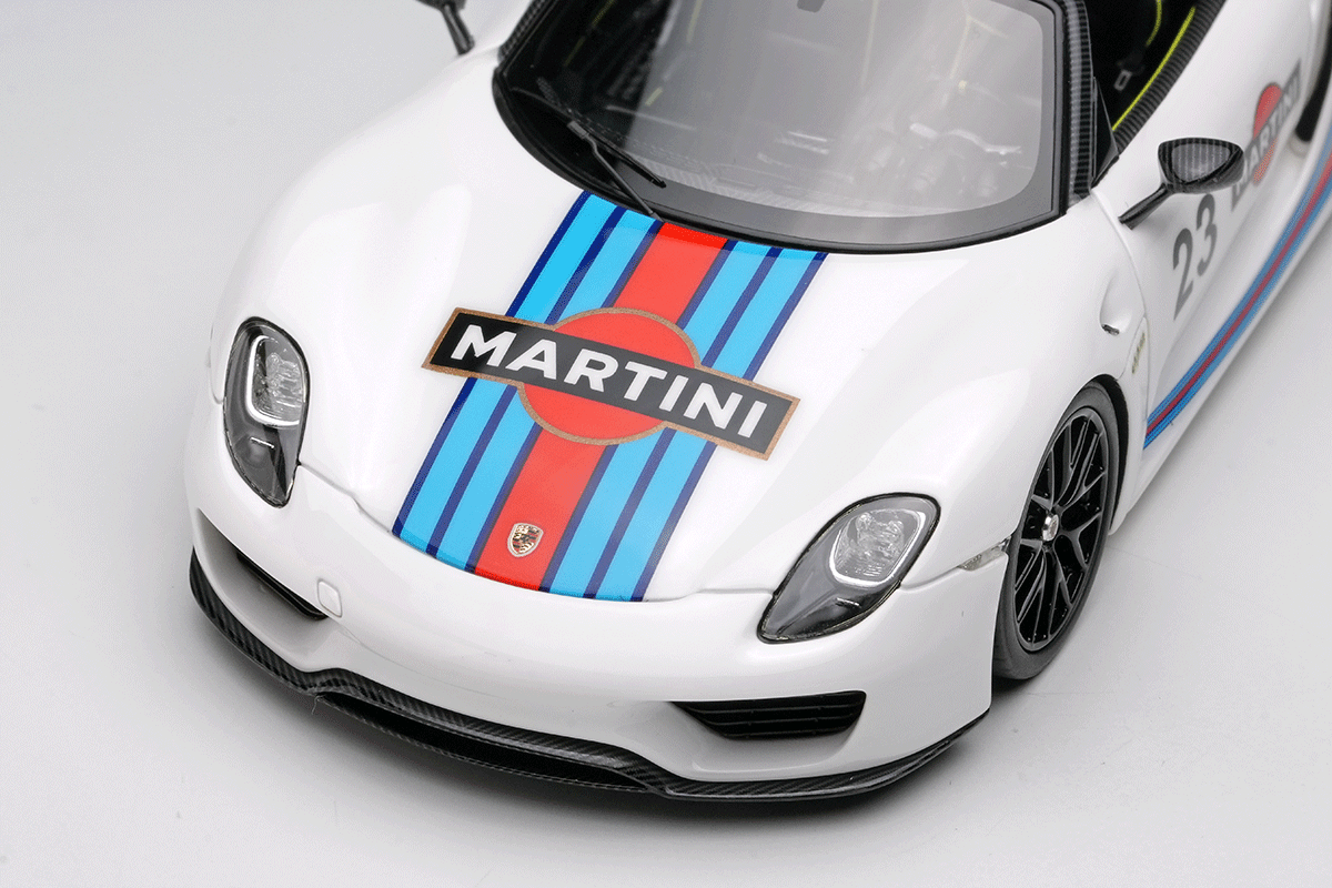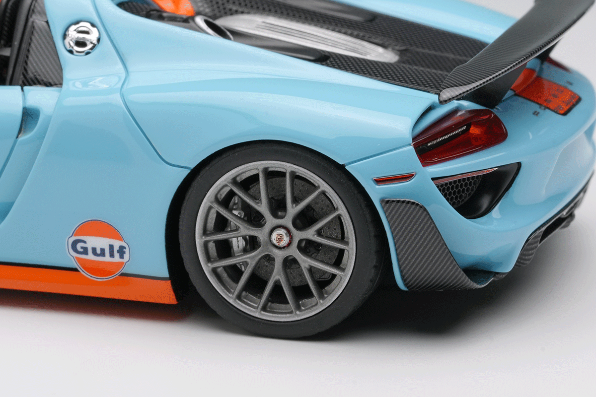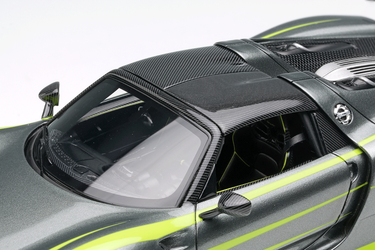 ポルシェのスペシャルモデル「ポルシェ 918 スパイダー」をさらにスパルタンなパフォーマンスパッケージを装着した「ポルシェ 918 スパイダー ヴァイザッハパッケージ」を忠実に再現したモデルになります。今回はアクティブリアウィングを展開させた姿を再現しています。