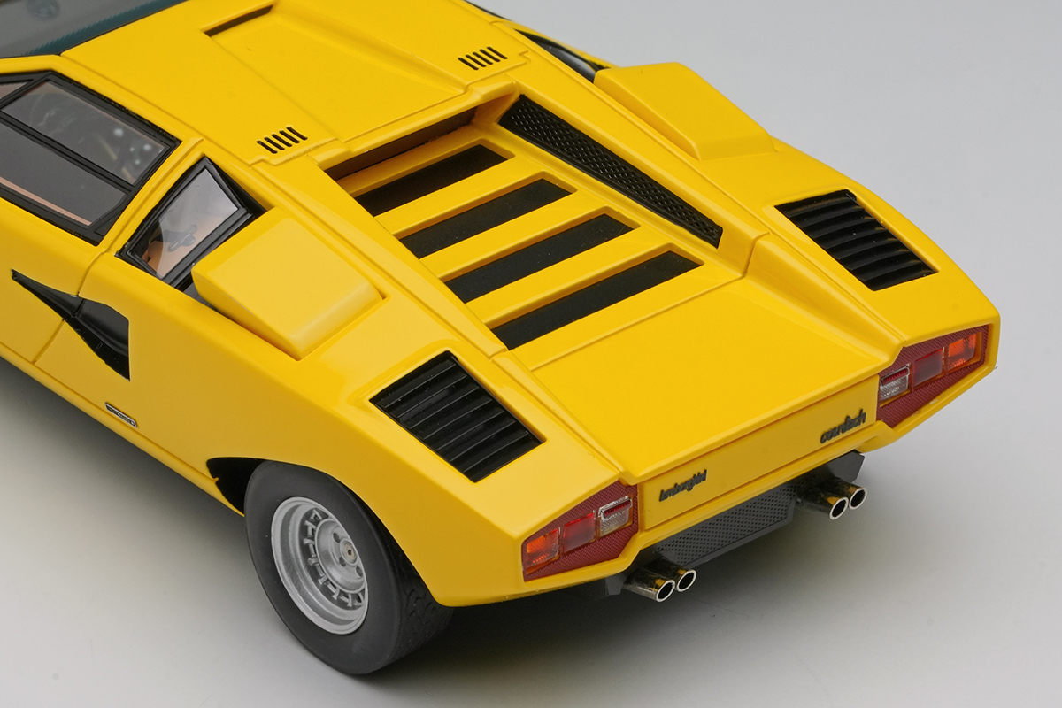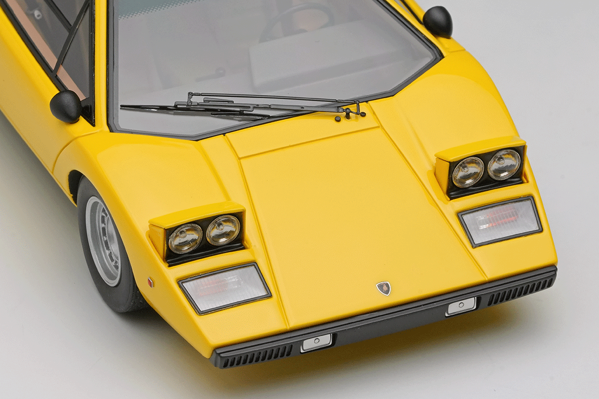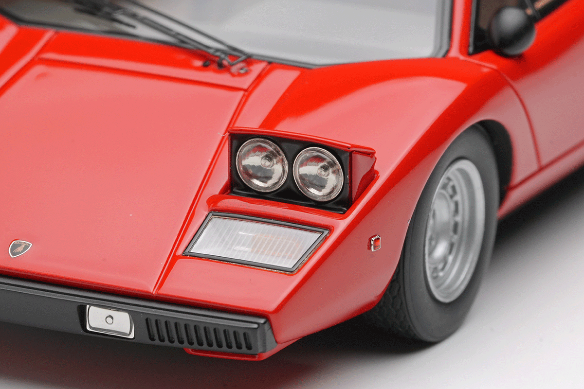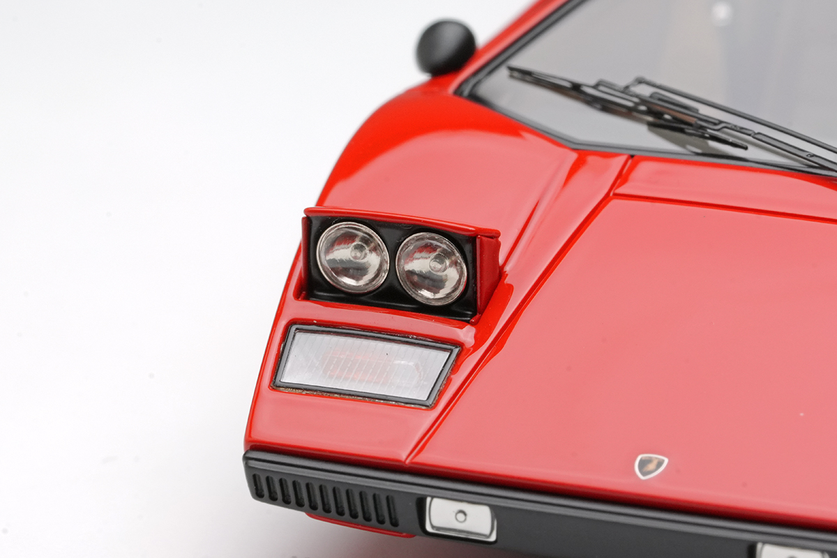 こうした事情もあり、もっともプロトタイプに近いスマートでピュアな初期型LP400は、早くから再評価が進み、今なお圧倒的な人気を誇ります。本モデルは、その初期型LP400をベースに、当時“隠しライト”とも呼ばれたリトラクタブルヘッドライトをポップアップした姿を再現しています。