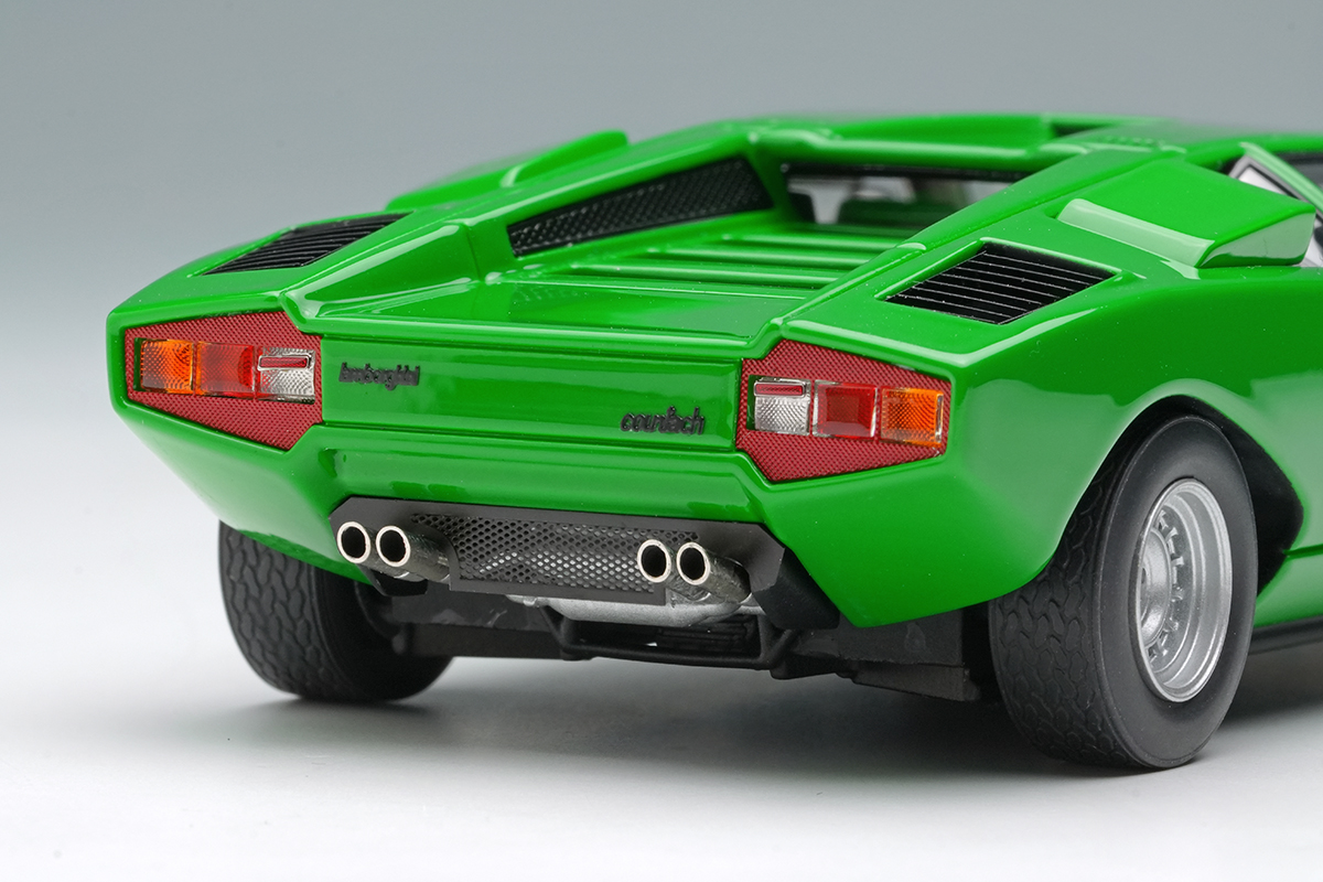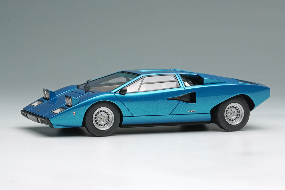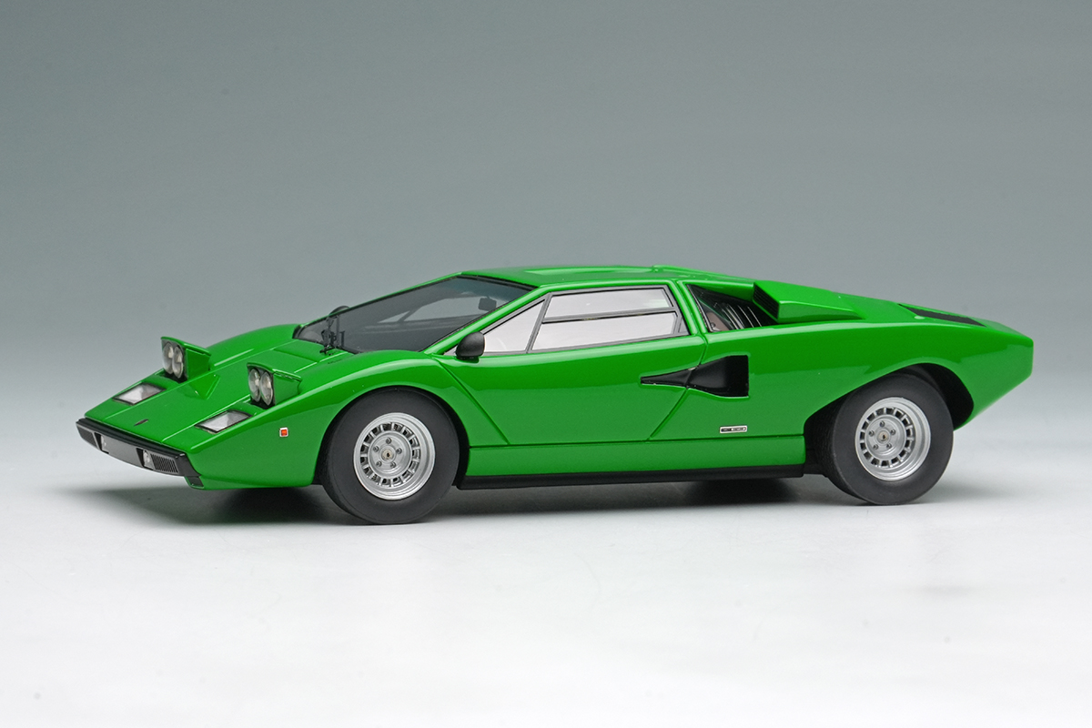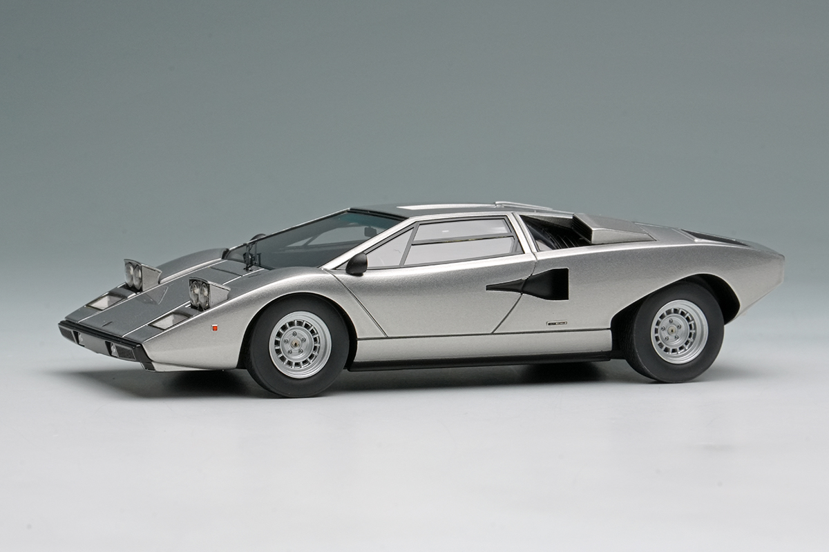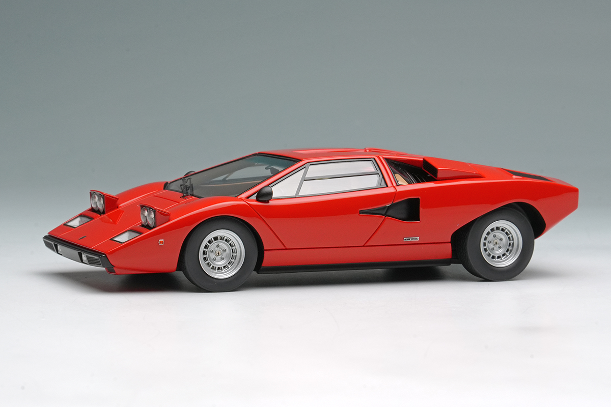 こうした事情もあり、もっともプロトタイプに近いスマートでピュアな初期型LP400は、早くから再評価が進み、今なお圧倒的な人気を誇ります。本モデルは、その初期型LP400をベースに、当時“隠しライト”とも呼ばれたリトラクタブルヘッドライトをポップアップした姿を再現しています。
