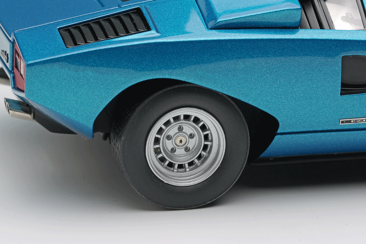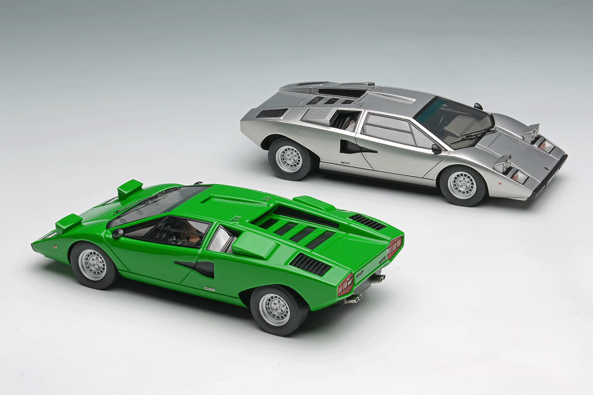 弊社は創業以来、数々のカウンタック・モデルカーを手掛けてまいりました。2010年代後半からは原型設計を見直し、第2世代の原型を用いた製品を展開。プロポーションの精度向上や各部の解像度を高め、より実車に近い仕上がりを追求しています。本製品も、その第2世代原型をベースに制作しました。