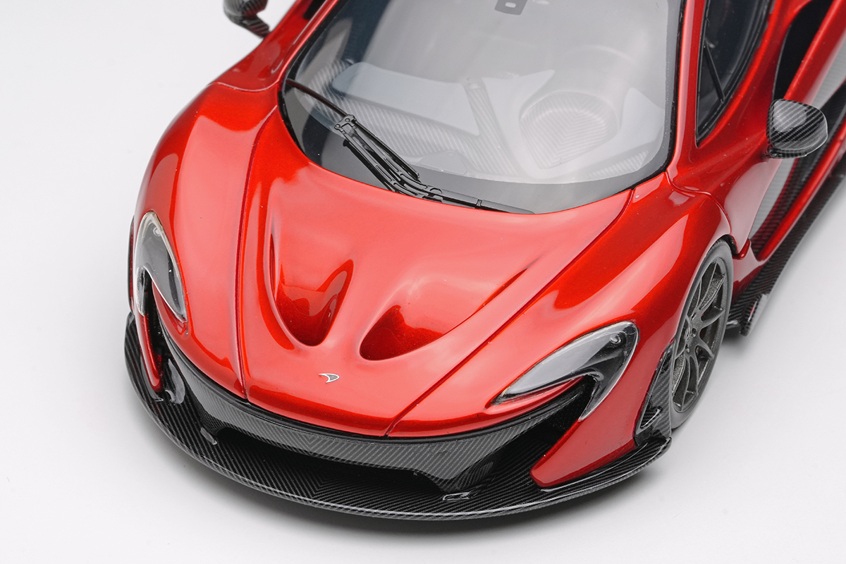 原型はマクラーレンオートモーティブより提供された3Dデータを使用しデフォルメの無い、実車に忠実な造形を目指しています。P1のスタイリングは一見するとシンプルですが、彫りの深いラインの奥にエアインテークが備わっているなど、シリコン型でボディを製造する際には、パネル単位で別部品化するなど様々な工夫が必要とされました。