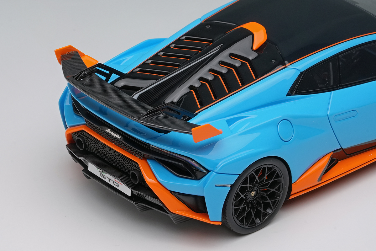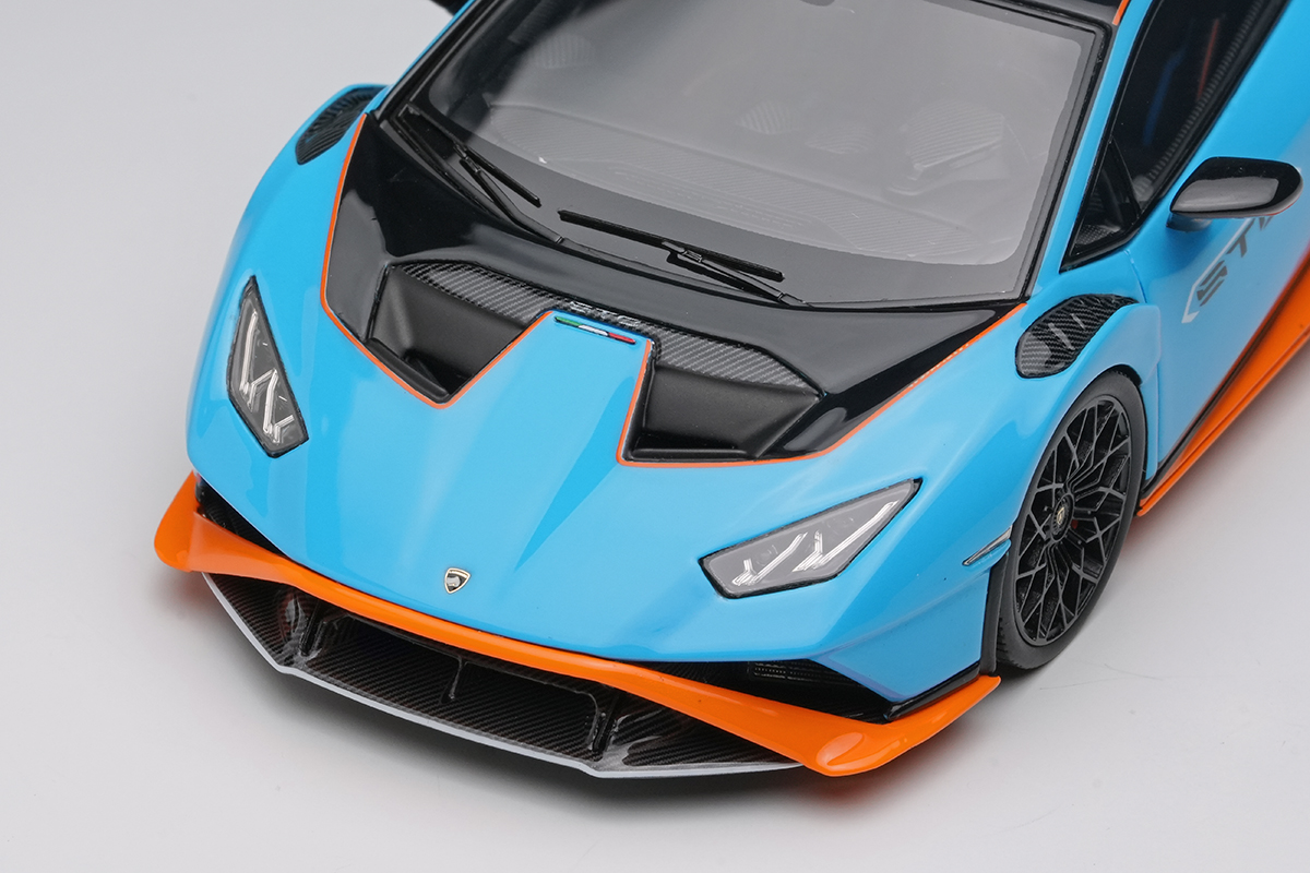 ランボルギーニのワンメイクレーシングカー「ウラカンスーパートロフェオ」を公道用にデチューンをした「ランボルギーニ ウラカン STO」を忠実に再現したモデルになります。