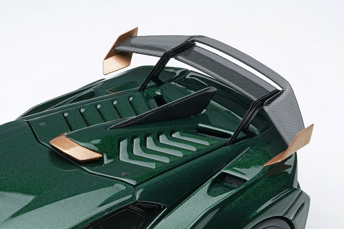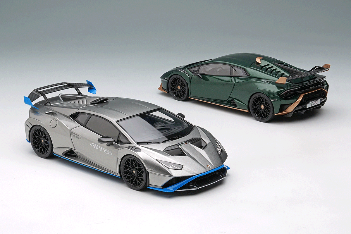 ランボルギーニのワンメイクレーシングカー「ウラカンスーパートロフェオ」を公道用にデチューンをした「ランボルギーニ ウラカン STO」を忠実に再現したモデルになります。
