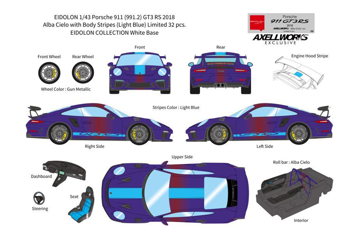 Porsche 911 (991.2) GT3 RS 2018 Alba Cielo with Body Stirpes (Limited 32 pcs.)
